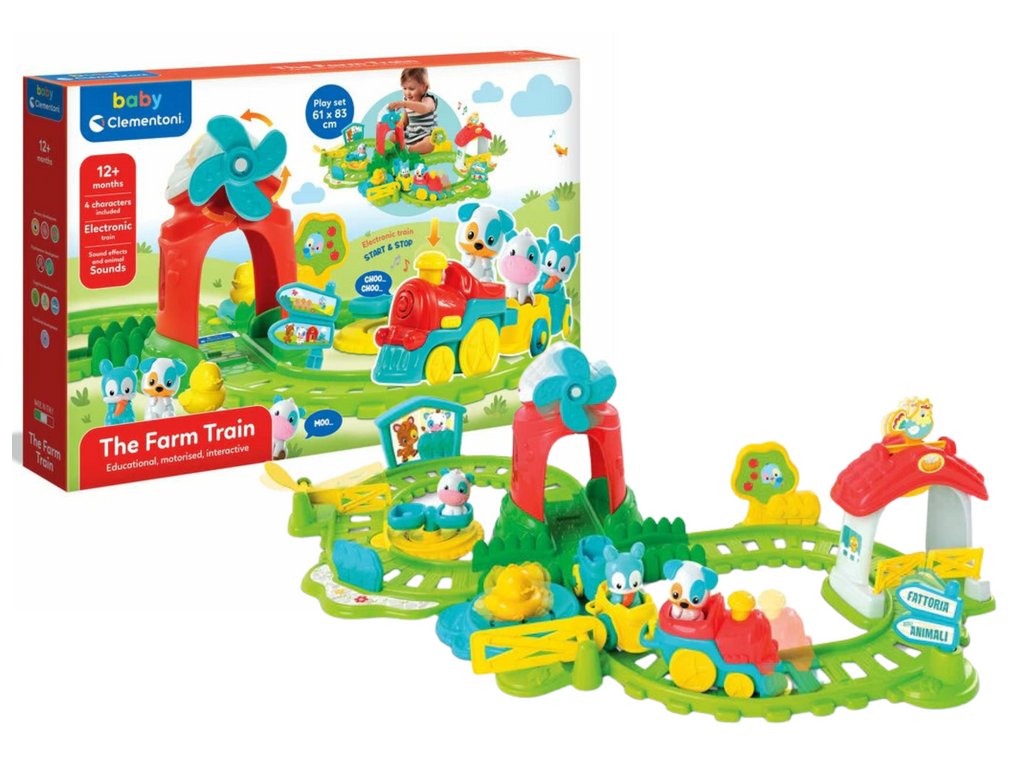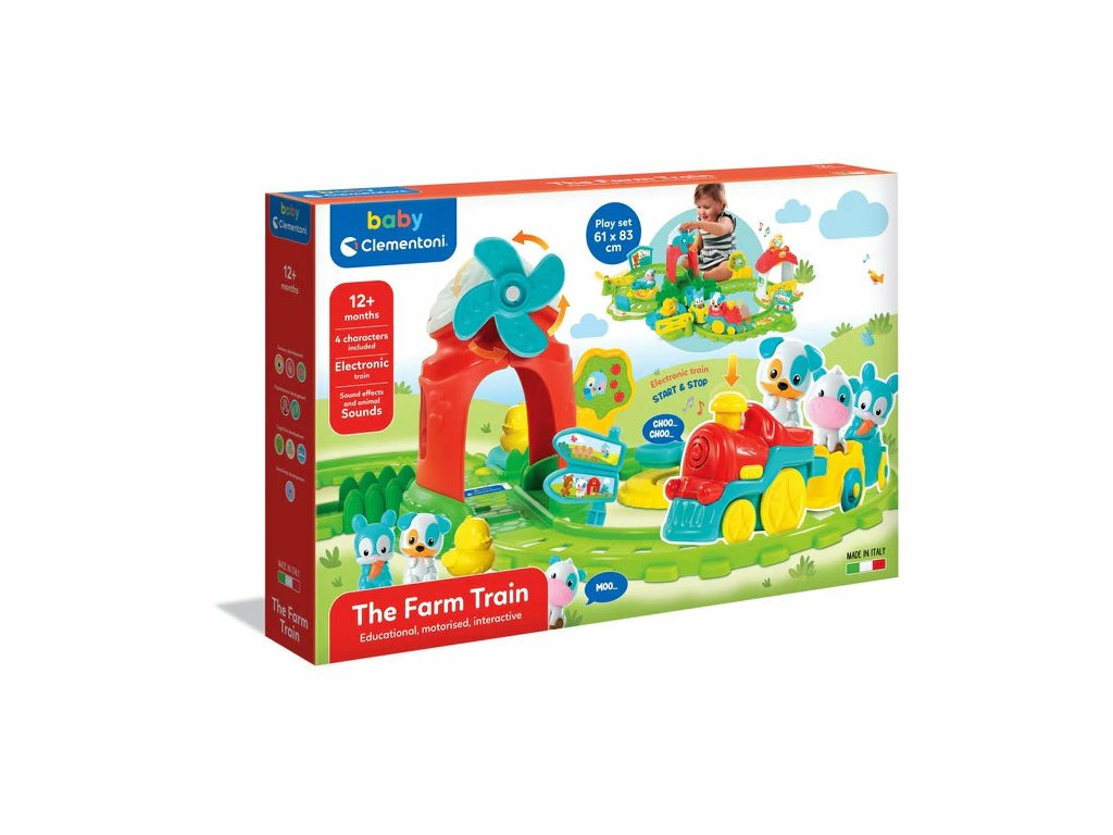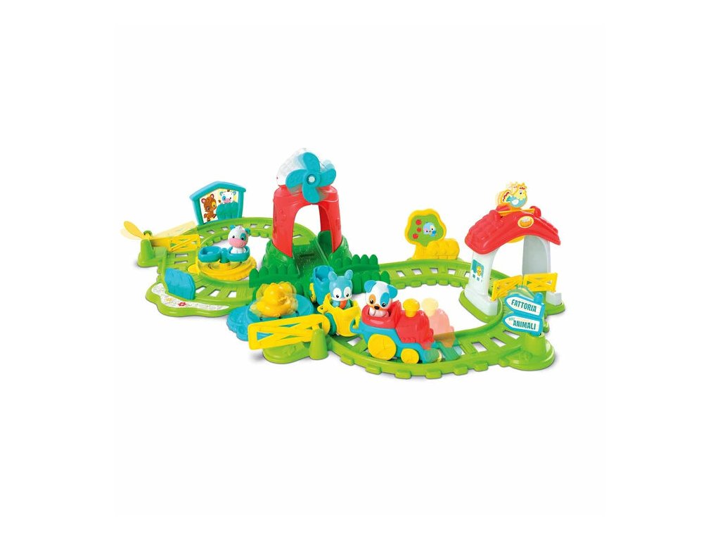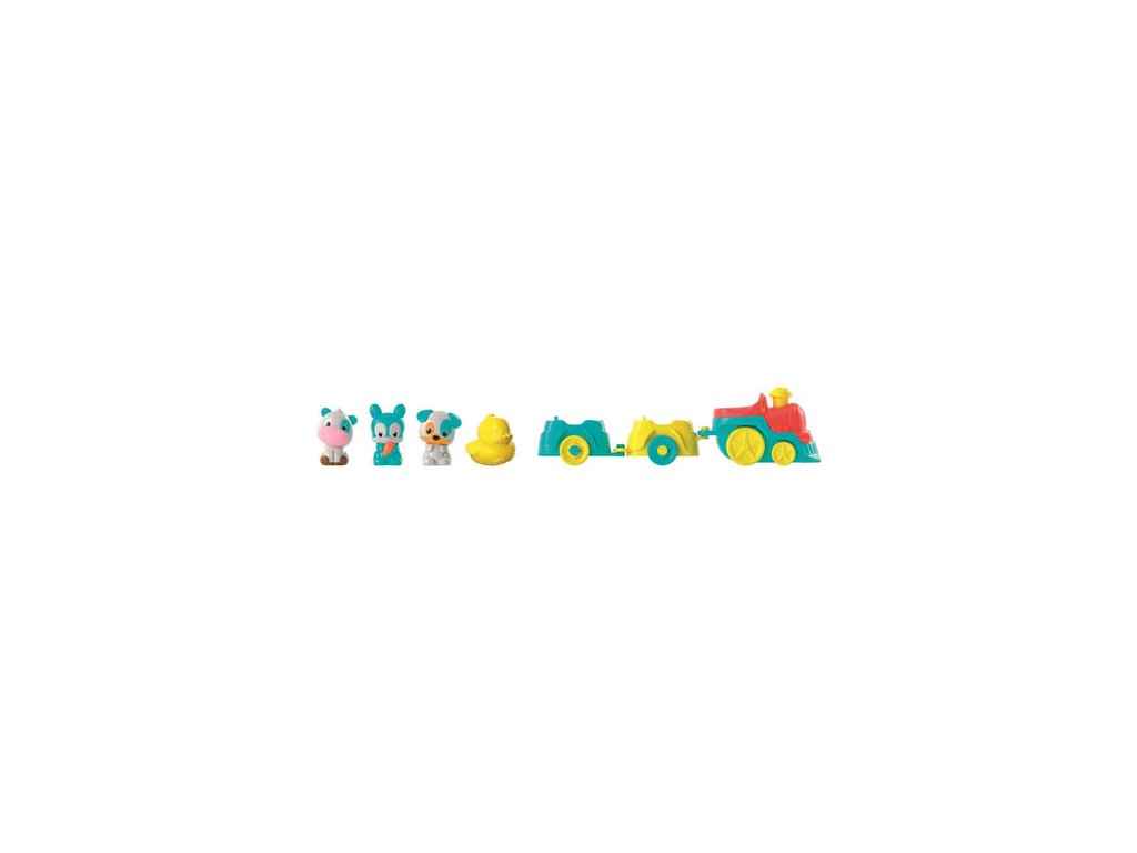Vlak potuje po poti, polni zanimivosti, ki predstavljajo igralni sklop, postavljen v svet kmetijske kmetije. Ko se dotakne dimnika, se vlak odpravi na fantastično pustolovščino s svojimi prijatelji: psom, kravo, zajcem in račko. Ko vlak pelje mimo, kmetija oživi: roke žerjava se dvignejo, mlin se začne vrteti, petelin in račka pa se oglasita s svojimi značilnimi zvoki. Ko zapremo rumena vrata, račka »zaplava« čez ribnik in vrtiljak se začne vrteti. To je prav zabavno. Spodbuja ročne spretnosti in koordinacijo oko-roka, hkrati pa spodbuja domišljijo.