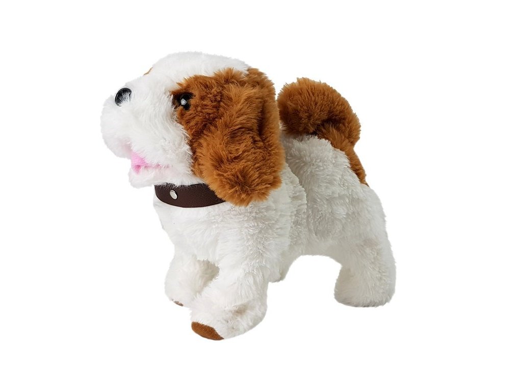 Pes hodi, premika rep, glavo in poleg tega laja. Zahvaljujoč priloženi krtači lahko žival počešete po glavi in bo začel sapevati.