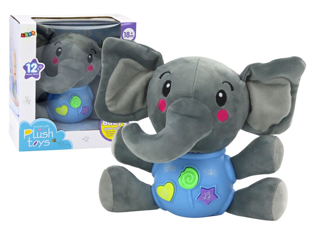 Interaktivni plišasti slon, ki bo zagotovo postal priljubljeni spremljevalec vsakega malega otroka! Izdelan je iz najkakovostnejšega, zelo mehkega materiala, ki je idealen za občutljivo otroško kožo. Njegov ljubek videz in prijetna na dotik struktura takoj vzbudita željo po crkljanju.