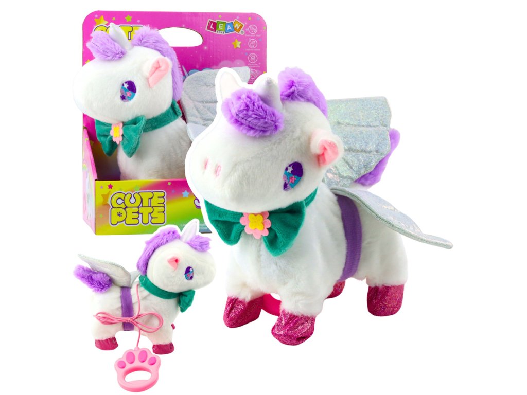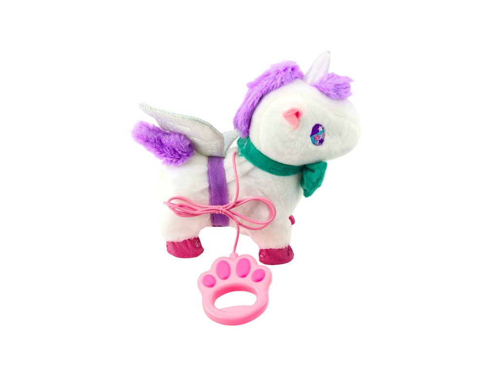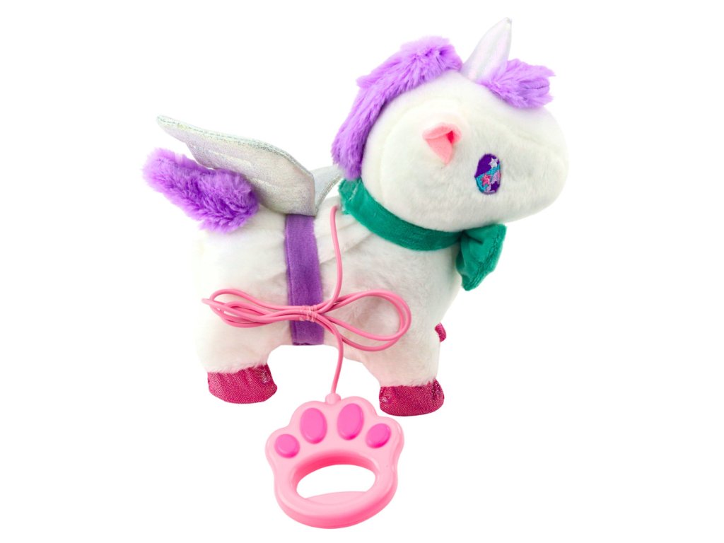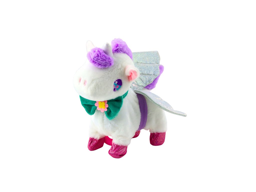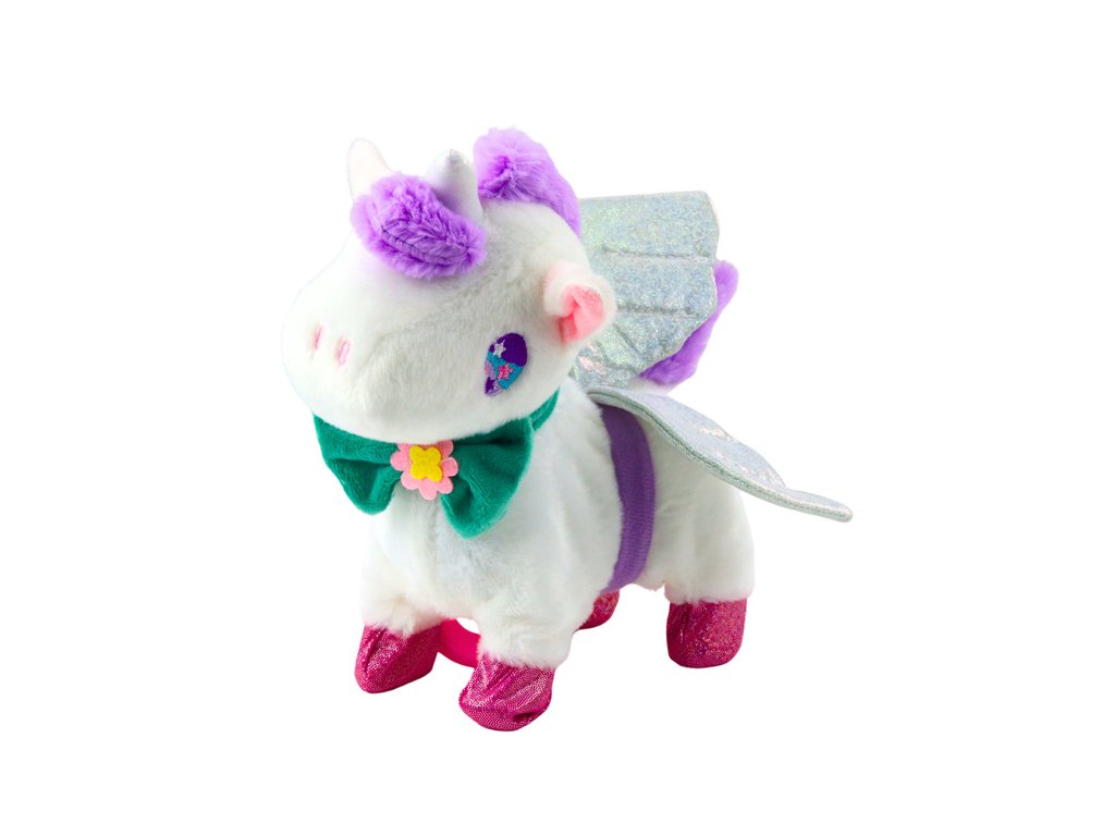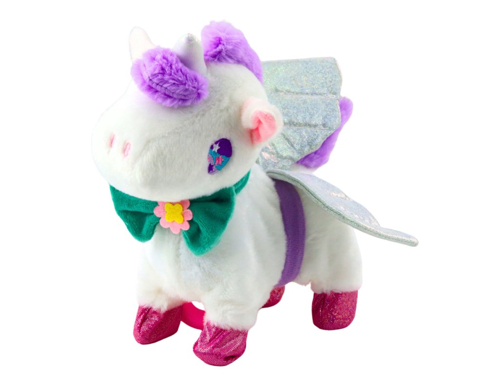 Interaktivni plišasti samorog je edinstvena igrača, ki bo vašega otroka popeljala v svet pravljične čarovnije. Čudovit, mehak in prijeten na dotik, opremljen z brokatnimi krili in pisano pentljo, bo postal najljubša maskota vsake male princeske. Igrača se odziva na dotik - samo pobožajte samoroga po hrbtu in aktivirate njegove funkcije: hojo, mahanje z repom, smrčanje in galop.