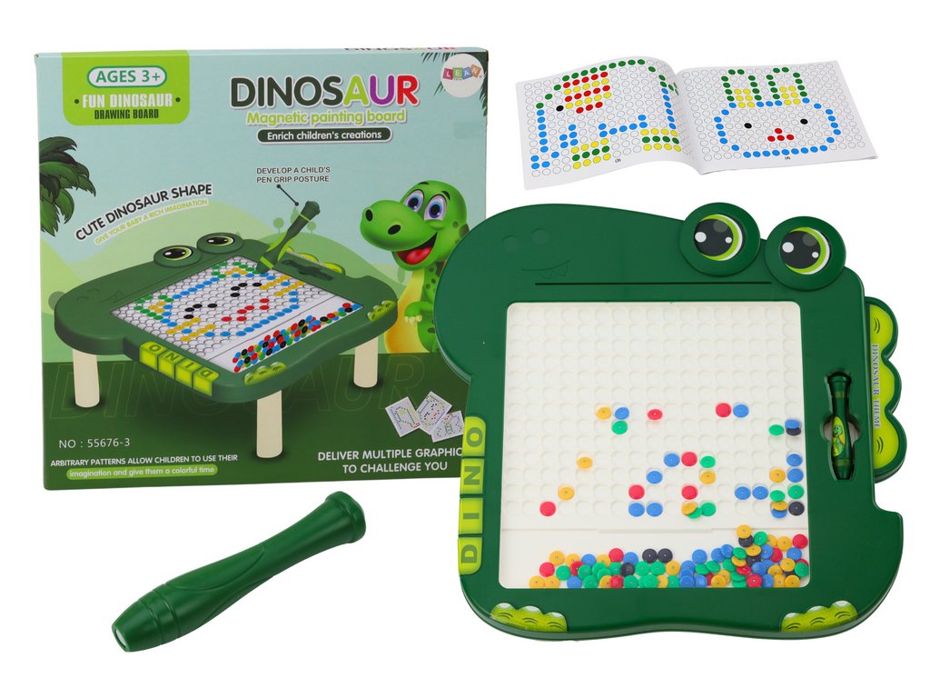 Izobraževalna magnetna tabla Dino sestavljanka zelena z biseri