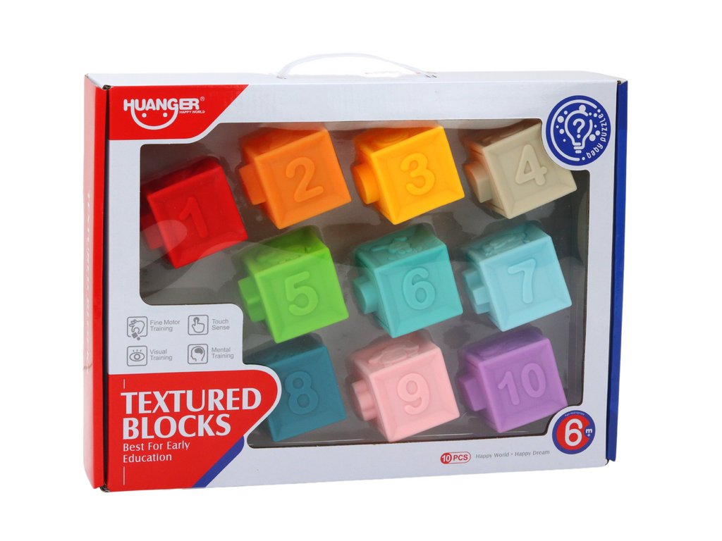 Največje veselje za otroke prinaša igra prilagajanja kock. Izstopajoče oblike na eni strani kocke se povezujejo z ustreznimi odprtinami na drugih kockah, kar spodbuja razvoj logičnega razmišljanja in fine motorike.