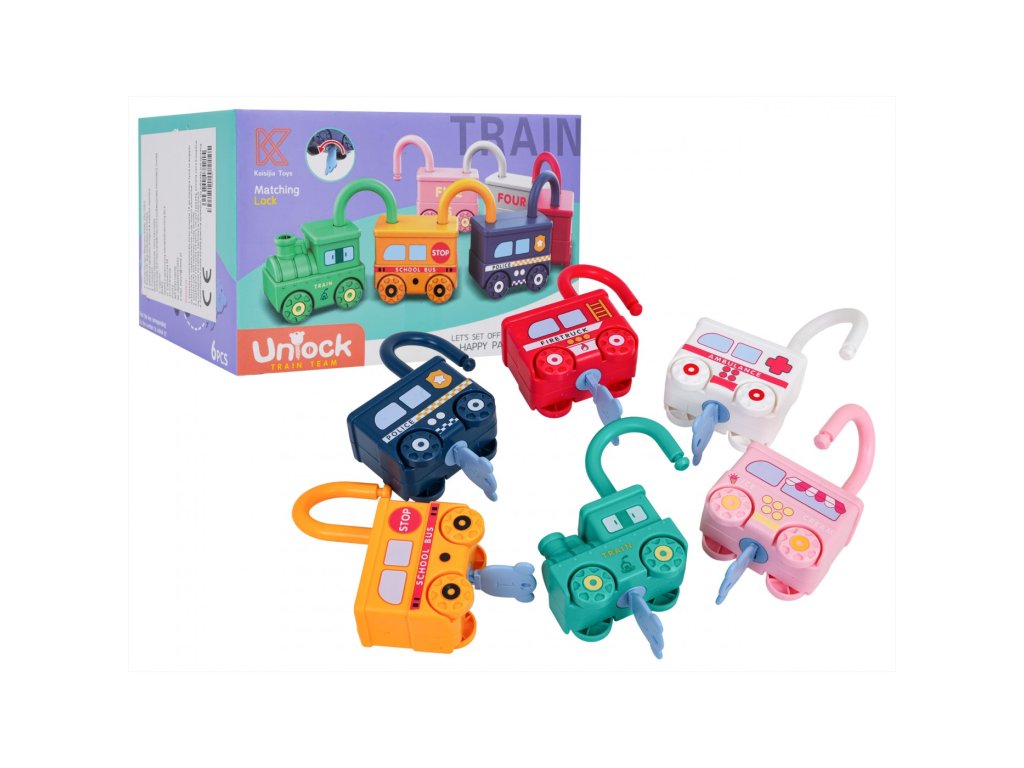 Izobraževalni barvni vlakec s ključavnicami in ključi