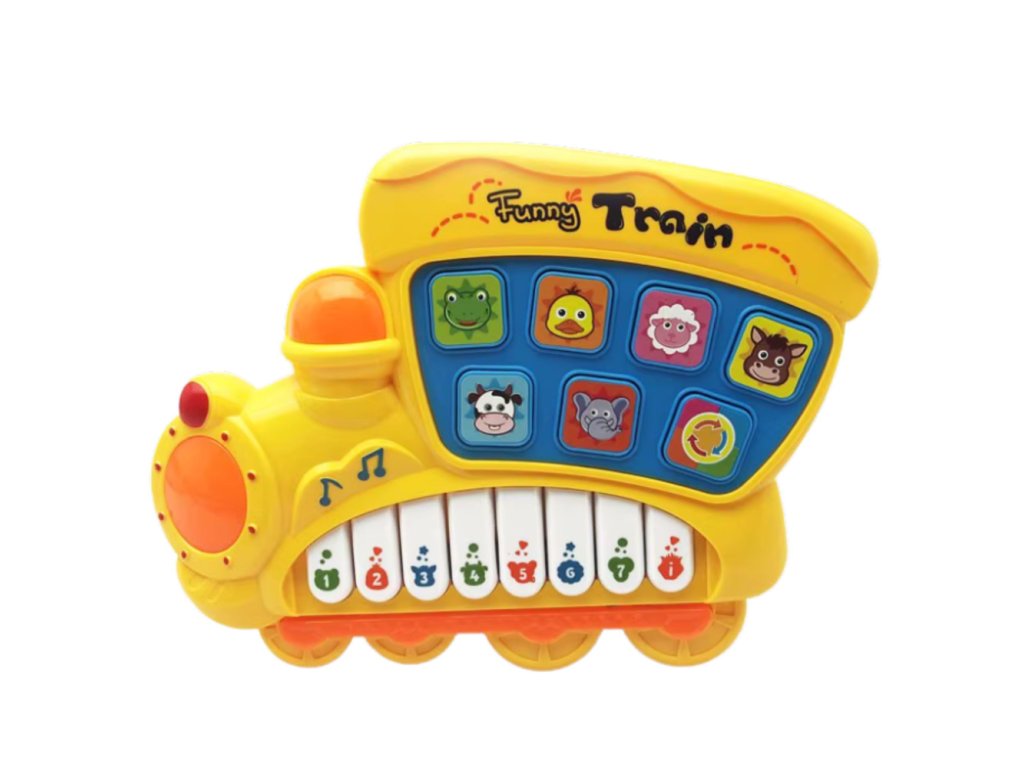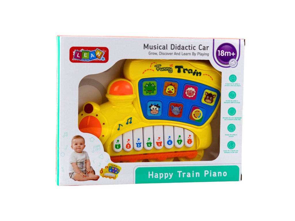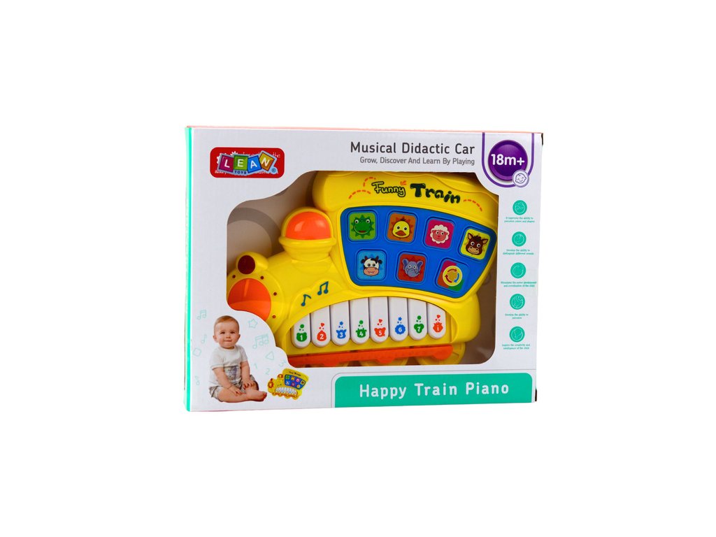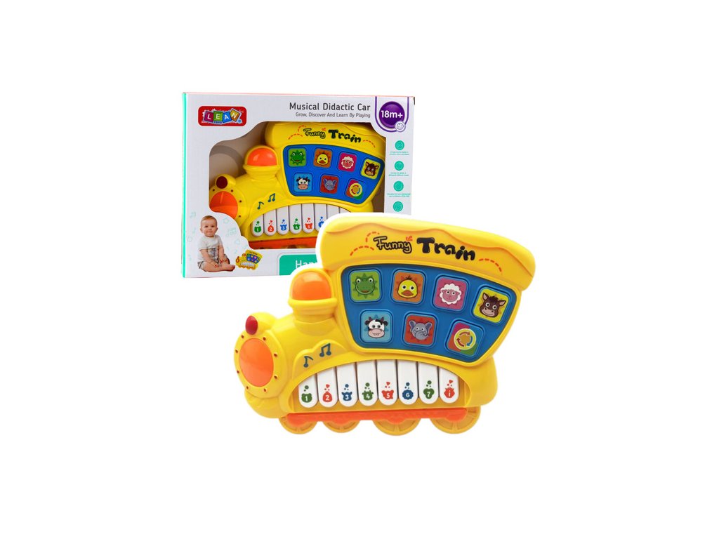 Lokomotiva je opremljena 6 živalskih gumbov , ki sprožijo različne zvoke in hrup, ter glasbene tipke z oznakami Do-Re-Mi-Fa-So-La-Ti-Do , ki bo vašemu dojenčku pomagal pri učenju osnov glasbe. Klavir ima različne poučne melodije in zabavne učinke, ki razvijajo otrokov sluh, glasbeni spomin ter koordinacijo rok in oči.