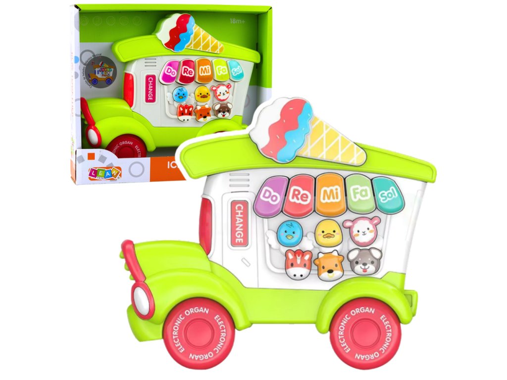 Izobraževalni klavir v obliki pisanega tovornjaka s sladoledom je edinstvena glasbena igrača, ki je bila zasnovana z mislijo na najmlajše otroke. Njegova privlačna oblika v obliki tovornjaka s sladoledom bo takoj pritegnila pozornost malčkov, zahvaljujoč bogati funkcionalnosti pa igra ni le zanimiva, ampak tudi poučna.