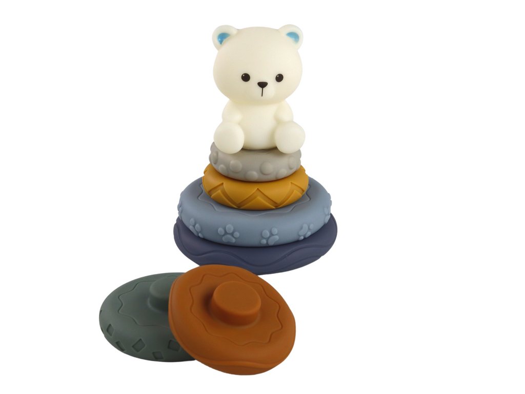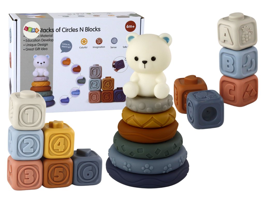 Osrednji element seta je čudovita piramida z medvedkom, ki malčka ne le spodbuja k igri, ampak tudi izboljšuje njegove motorične sposobnosti z zlaganjem krogov različnih velikosti in zanimivih vzorcev. Na vrhu piramide ponosno stoji beli medvedek, ki celotni konstrukciji dodaja čar in navdihuje k nadaljnjemu raziskovanju.