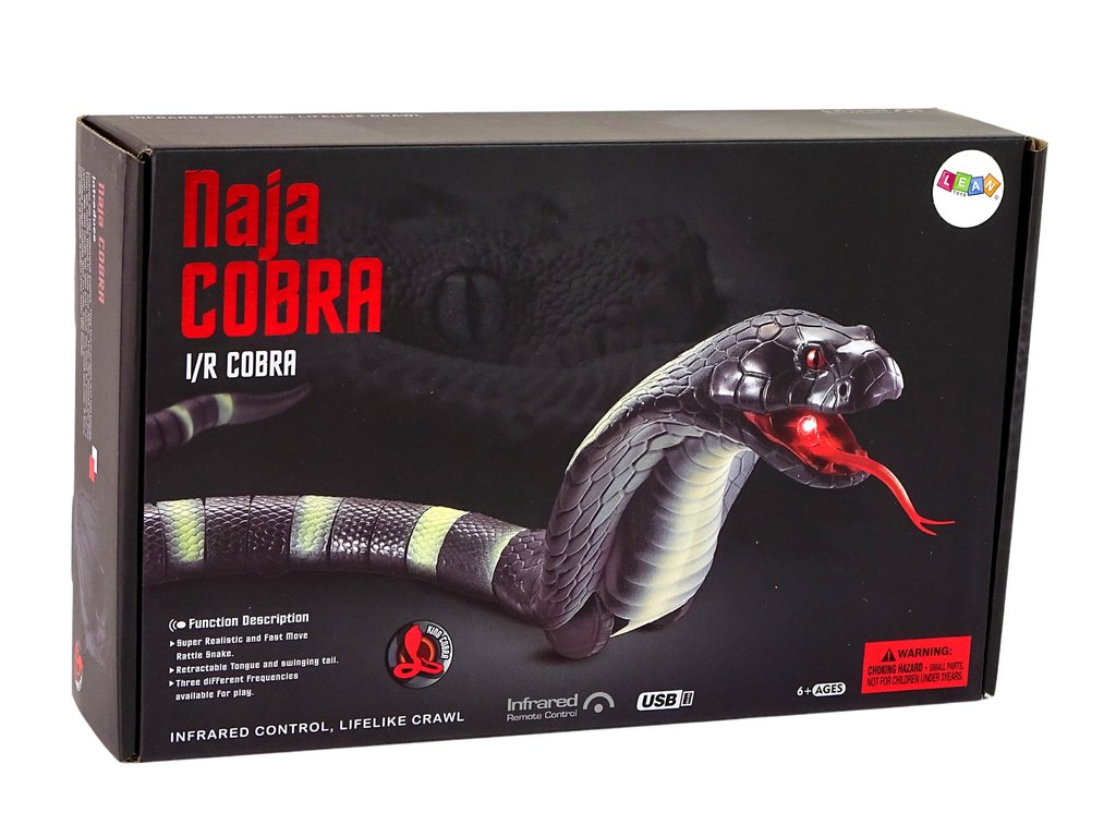 Kača ima črno barvo s svetlimi izrazitimi črtami, značilnimi za kobro. Rdeče oči in izrazita rdeča barva znotraj gobca vzbujata strah. Polnjenje poteka preko USB. Super prednost je infrardeče daljinsko upravljanje s črno-rdečim upravljalnikom v obliki jajčka. Dva gumba pomagata premikati naprej in vstran.