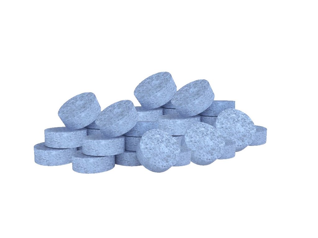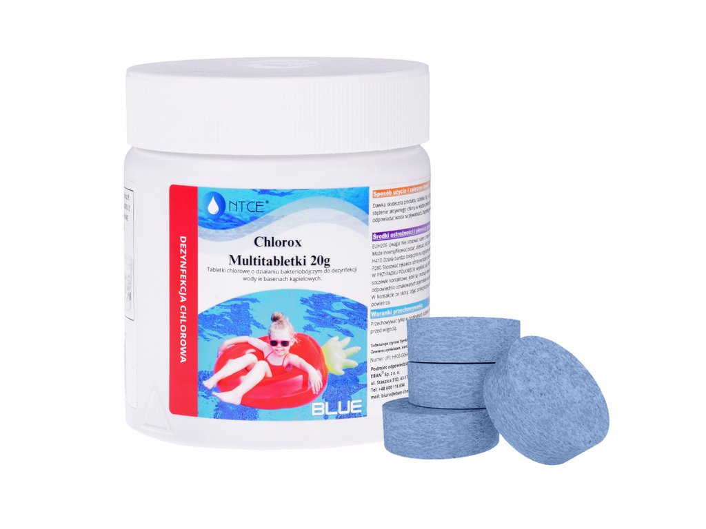 Klorove tablete z baktericidnim učinkom za dezinfekcijo vode v bazenih. Na voljo so tablete s težo 20 g.