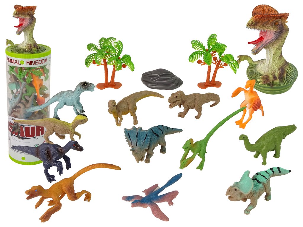Komplet vsebuje 12 figuric, vse so zapakirane v podolgovati cevi z upodobitvijo dinozavra. Znotraj se nahajajo figurice dinozavrov. Igra bo hkrati tudi poučna. Otroci se bodo prenesli v svet Jurskega parka, kjer se bodo spoznali z njihovim videzom in življenjem.