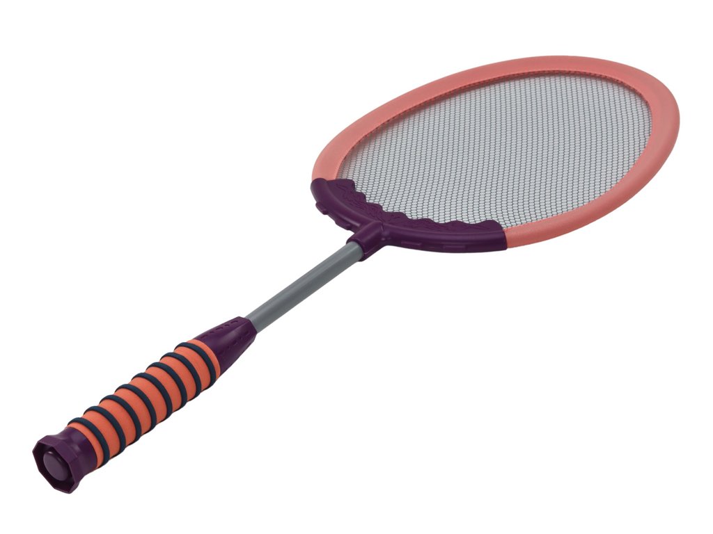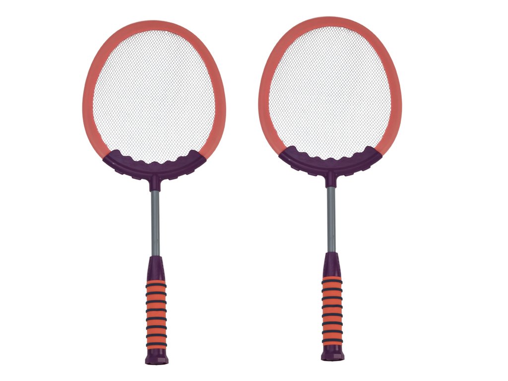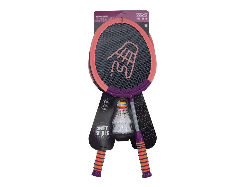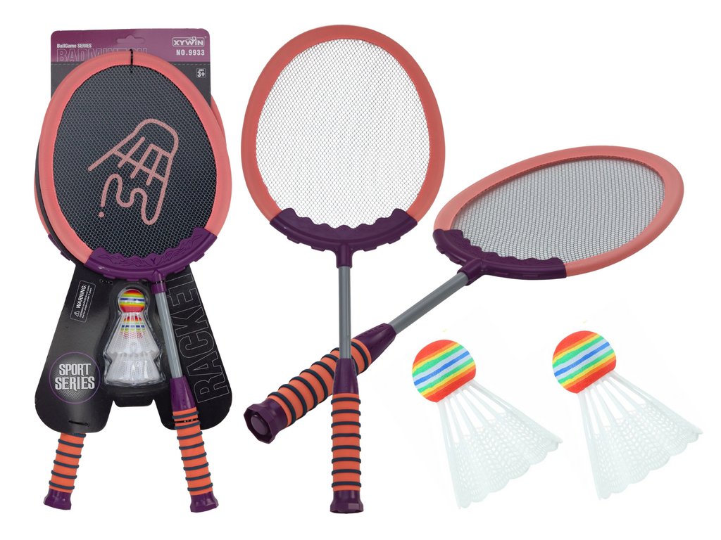 Komplet za badminton, idealen za ljubitelje tega športa. Loparji so izdelani iz kakovostne plastike v elegantni roza barvi z vijoličnimi dodatki, kar jim daje privlačen videz. Ročaj loparjev je obložen z mehko peno za udoben in varen oprijem med igro, oblazinjenje loparjev pa je izdelano iz tkanine, kar zagotavlja odlično kvaliteto in vzdržljivost.