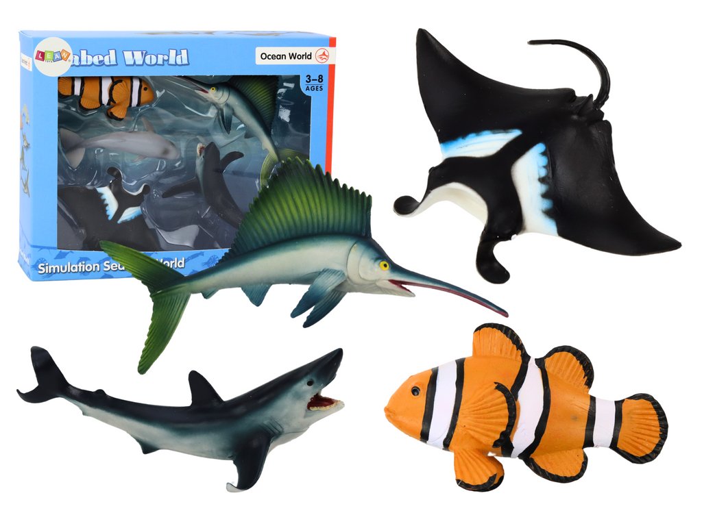 Komplet figuric morskih živali ni le zbirateljska radost, temveč tudi izobraževalna in ustvarjalna igra. Komplet vsebuje pet impresivno realističnih modelov: morskega psa, delfina, skate, jadranko in klovna. Vsaka figura je bila pazljivo zasnovana, da ohrani značilne lastnosti vsake živali.