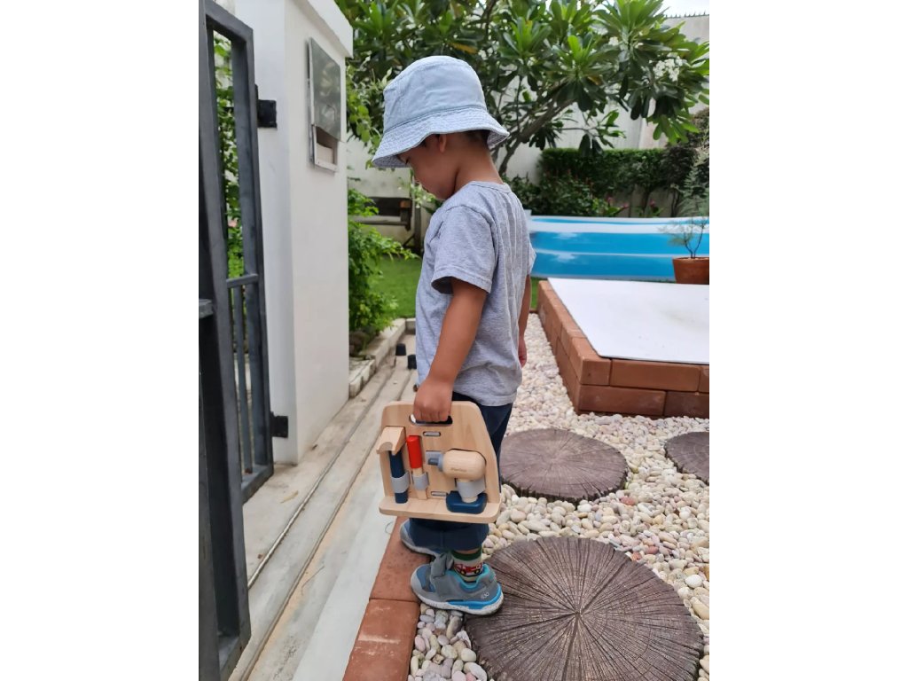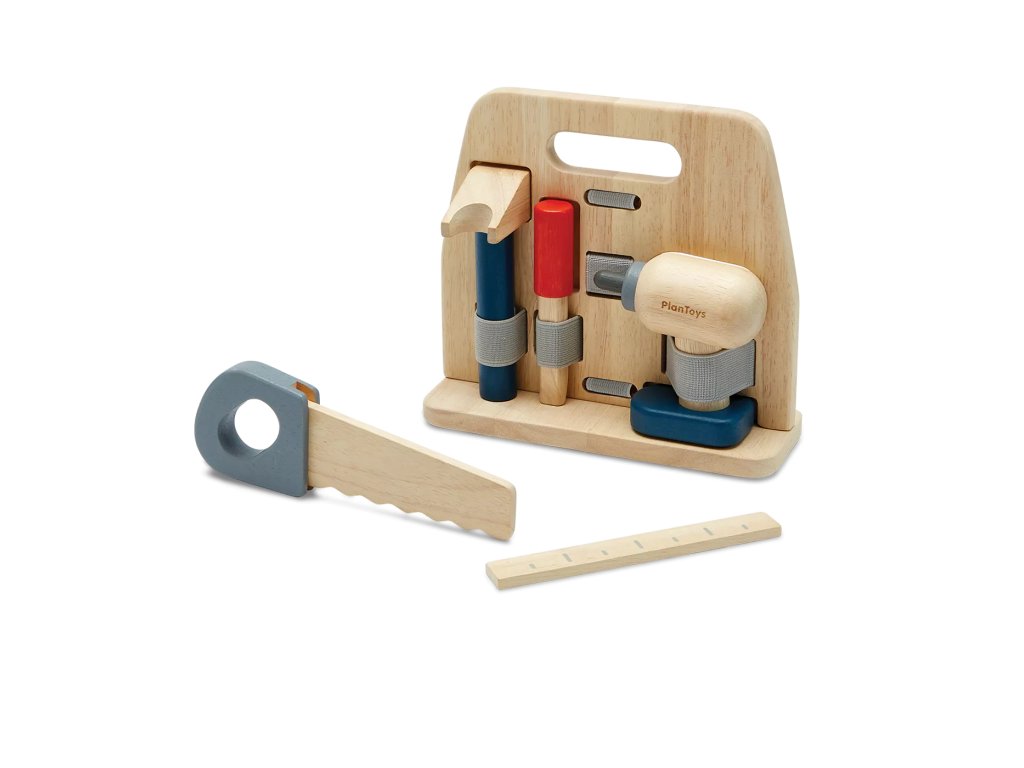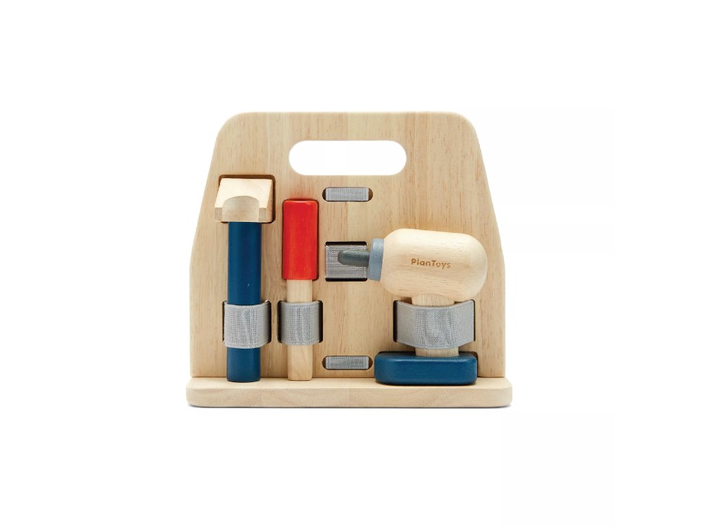 Čudovit komplet orodja za male pomočnike, graditelje in popravljalce. Zahvaljujoč praktičnemu lesenemu stojalu ima vsako orodje svoje mesto in je takoj pripravljeno za uporabo. Igra spodbuja razvoj fine motorike, koordinacije, koncentracije, domišljije in socialnega zaznavanja.