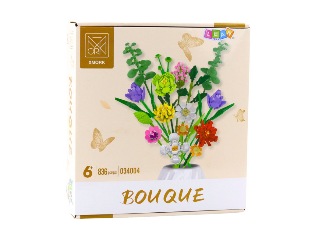 Komplet pisanih šopkov je idealen za vse, ki ljubijo ustvarjalnost in estetske dekoracije. Vsebuje 836 delov , iz katerih lahko preprosto sestavite realistične rože v široki paleti barv - beli, rdeči, roza, vijolični, rumeni in zeleni. Vsak cvet je podroben in omogoča prosto spreminjanje - spreminjate lahko dolžino stebel, razporeditev listov in barvne kombinacije glede na lastno domišljijo.