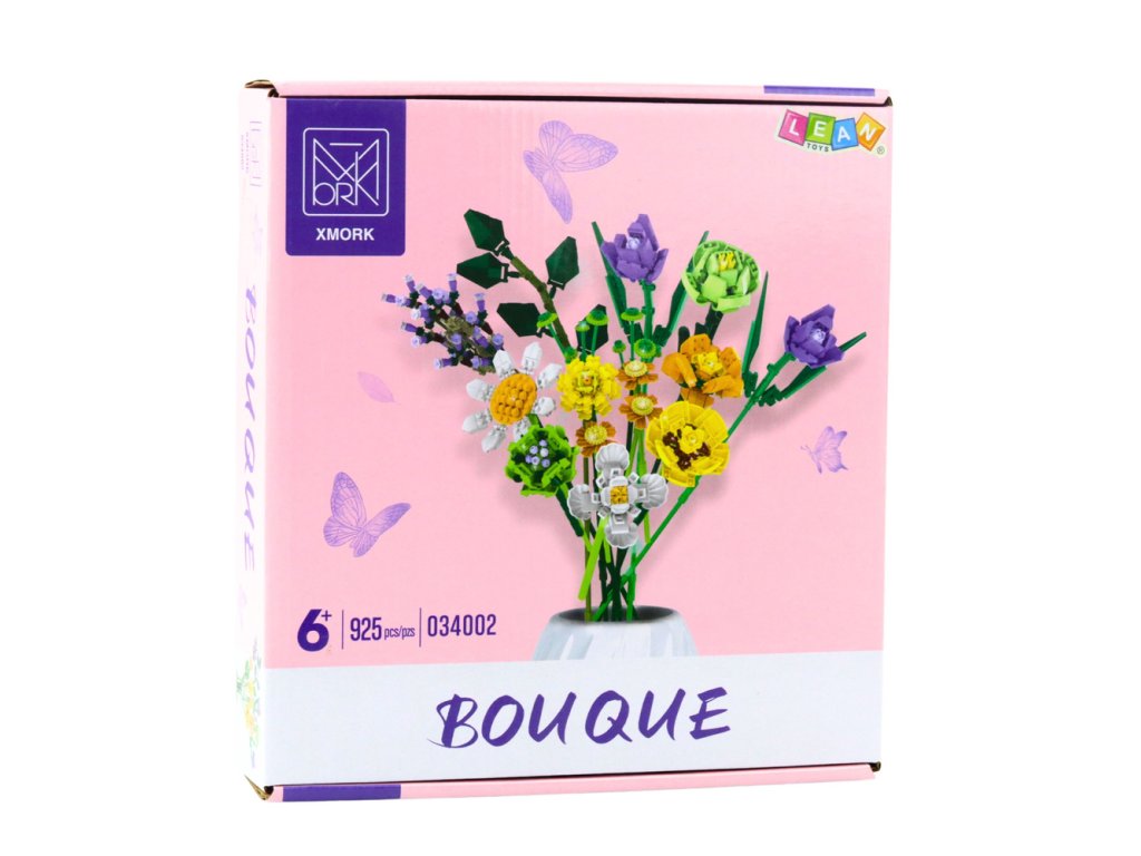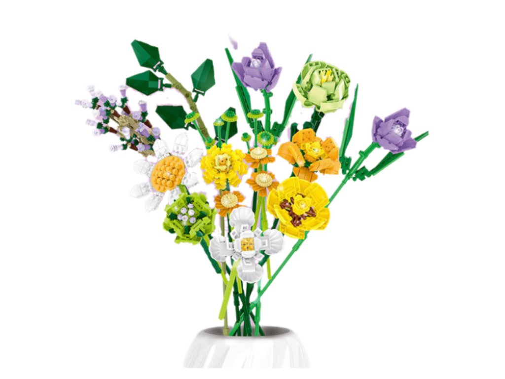 Komplet barvitih šopkov združuje veselje do ustvarjanja z elegantnim rezultatom. Iz 925 kosov lahko sestavite 12 raznolikih rož v nežnih tonih zelene, bele, vijolične, rumene in oranžne. Rezultat je šopek, ki je videti harmoničen, svež in naraven – idealen kot dekoracija doma ali izvirno darilo.