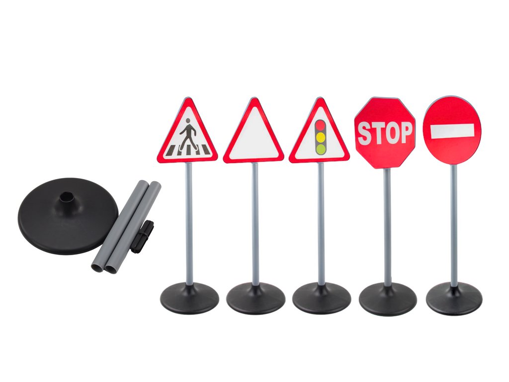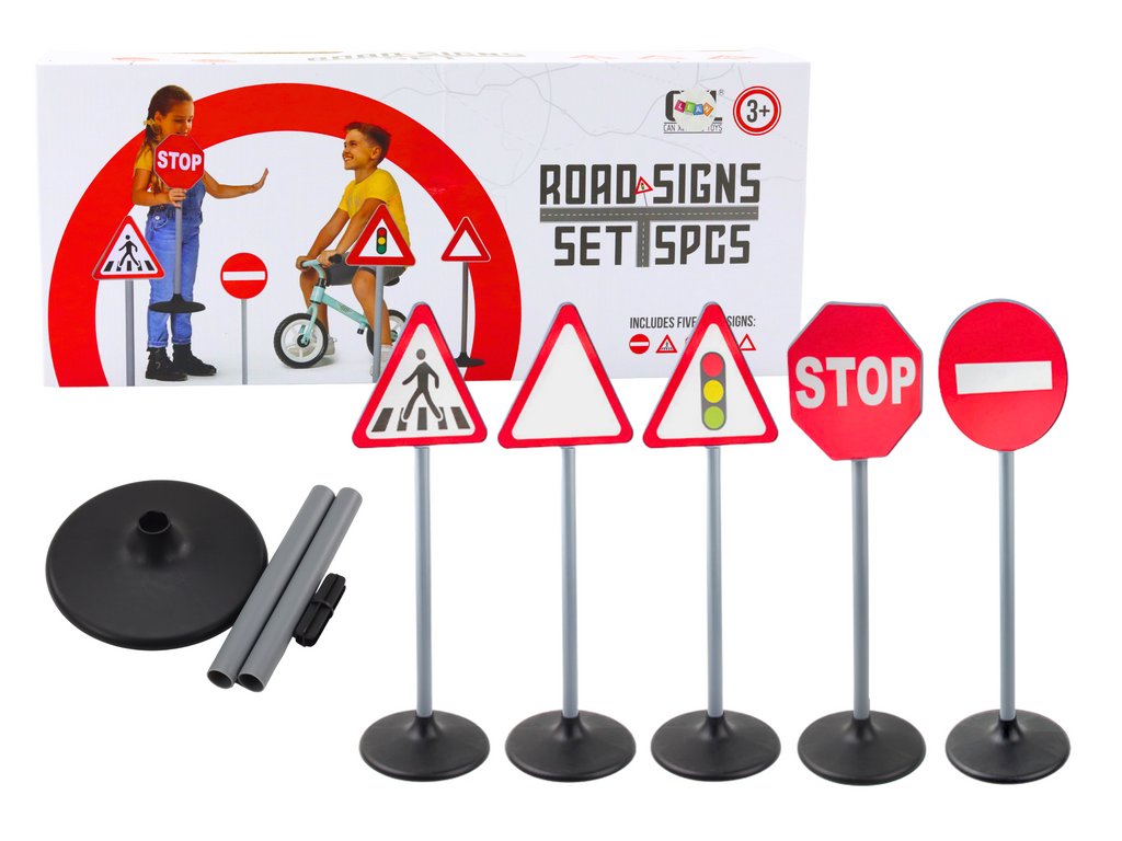 Izobraževalni komplet prometnih znakov - idealen za učenje prometnih pravil na privlačen način. Ta celovit komplet bo otrokom pomagal spoznati pravila varnega gibanja na cestah in jim hkrati zagotovil obilo zabave. Pet velikih prometnih znakov za otroke od 3. leta starosti. Znakci so izdelani iz trpežnih materialov z dodatno pozornostjo do podrobnosti.