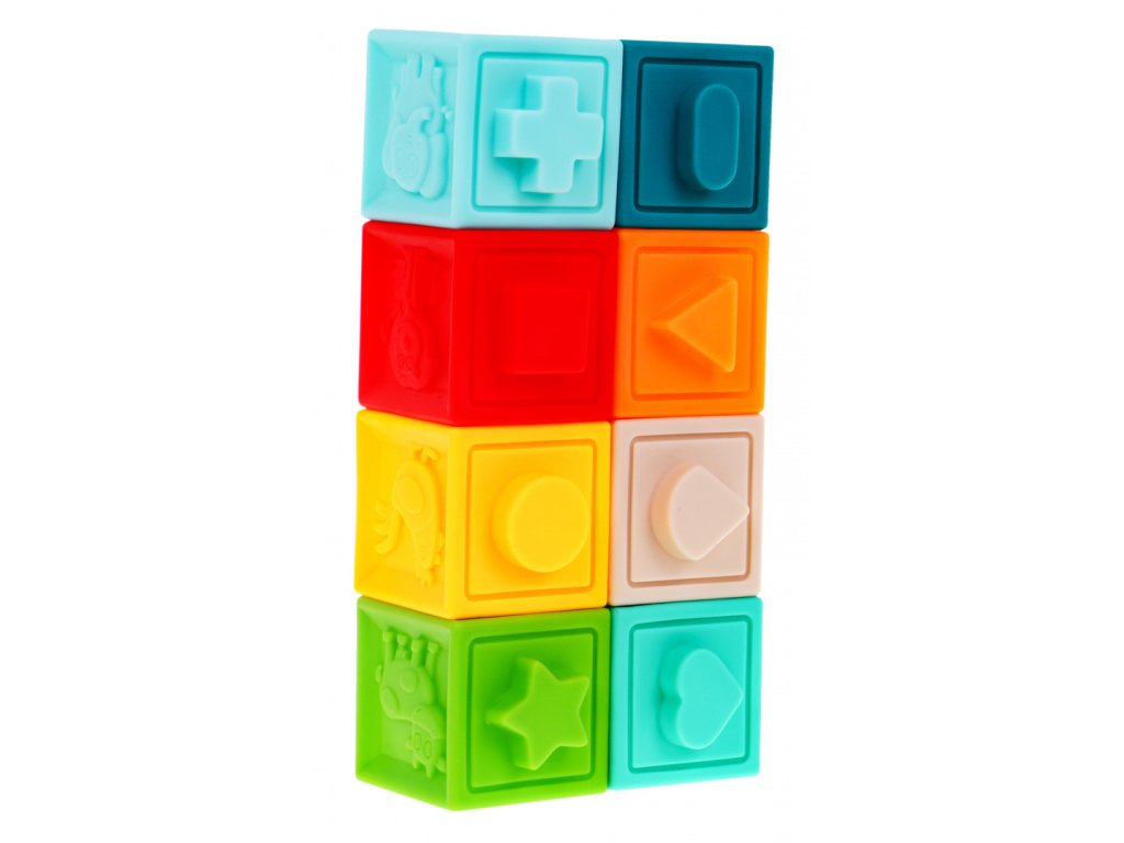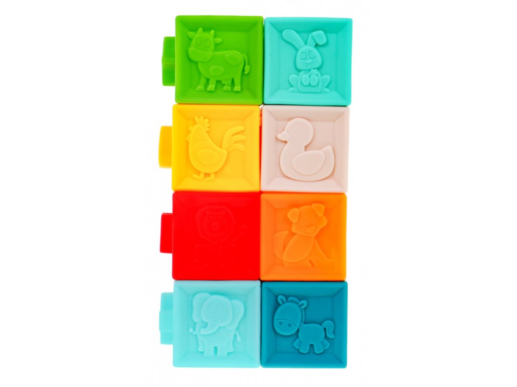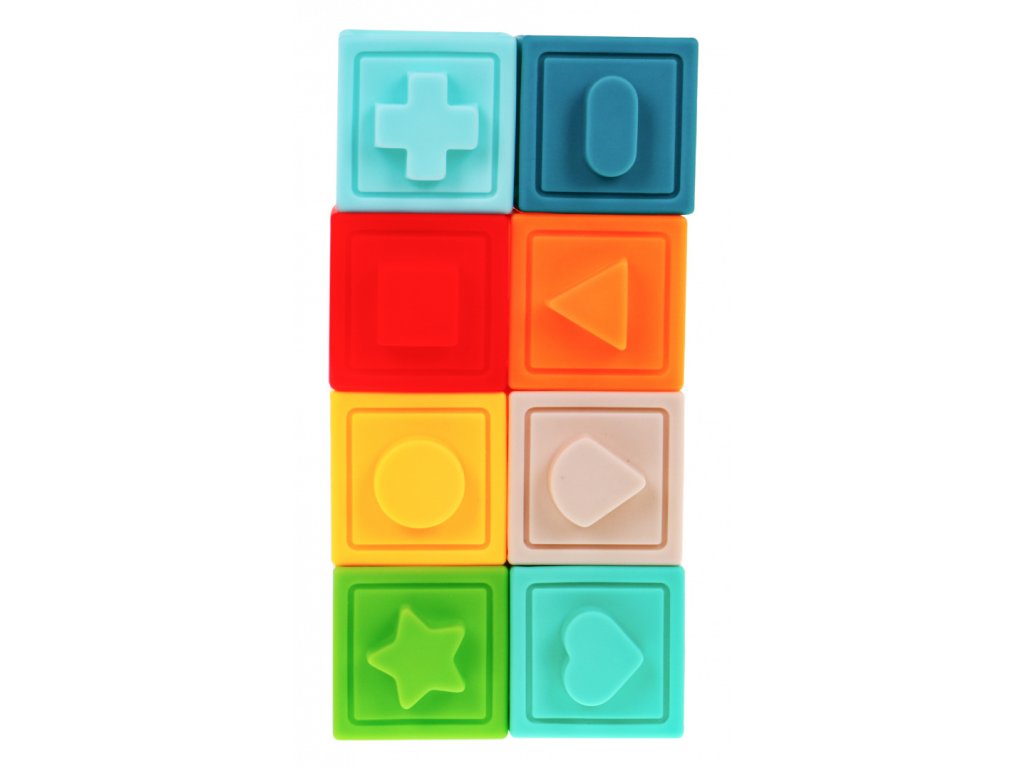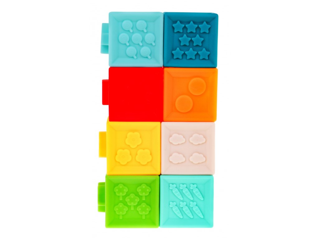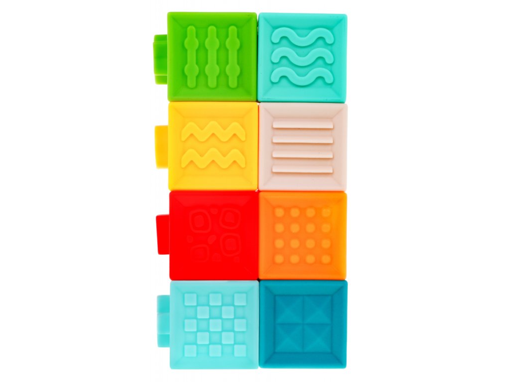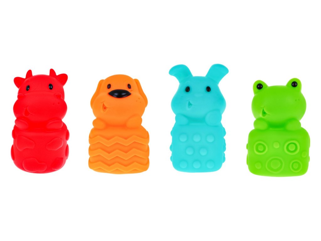 Komplet senzoričnih gumijastih igrač spodbuja otroško domišljijo, vid, sluh in dotik. Komplet vsebuje 20 gumijastih igrač, vsaka s svojo strukturo in barvo, kar otroku nudi različne dražljaje za otroške čute.