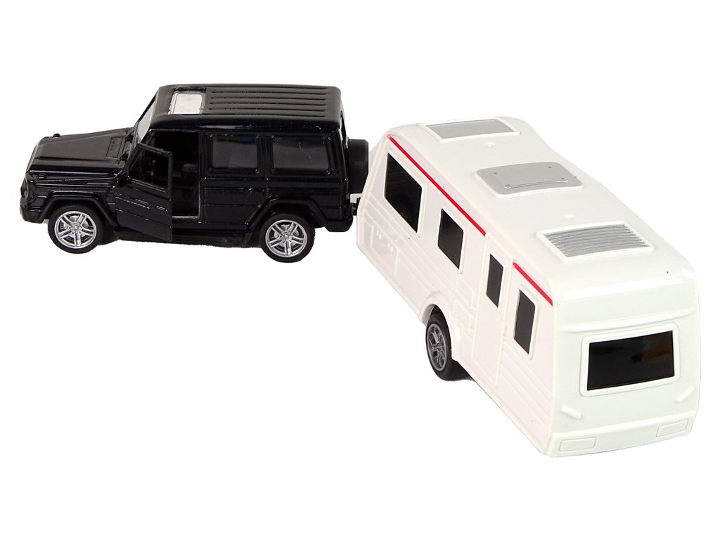 Komplet vozil Jeep s prikolico črna je idealen izdelek za vse male ljubitelje izletov, kampiranja in predvsem za otroke, ki želijo sami odkrivati svet. Z našim kompletom lahko vaš otrok razvija svojo domišljijo in ustvarja različne scenarije igre.