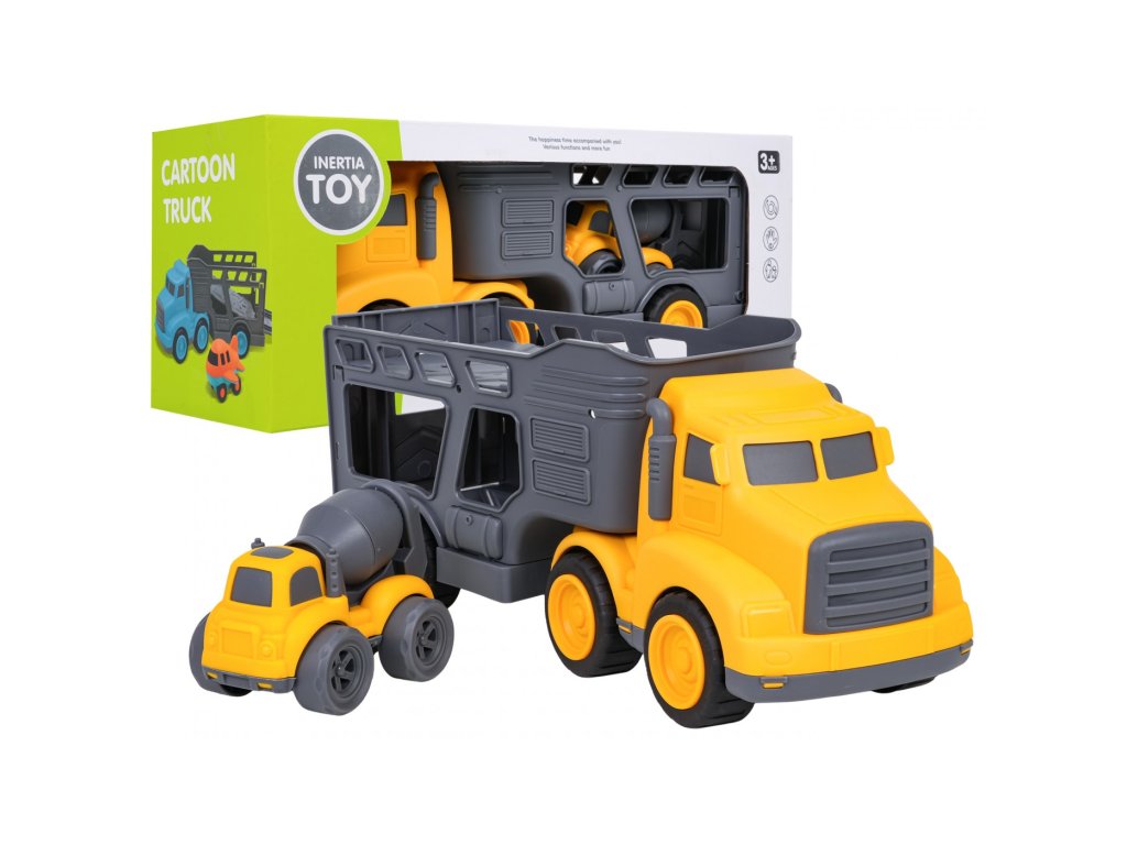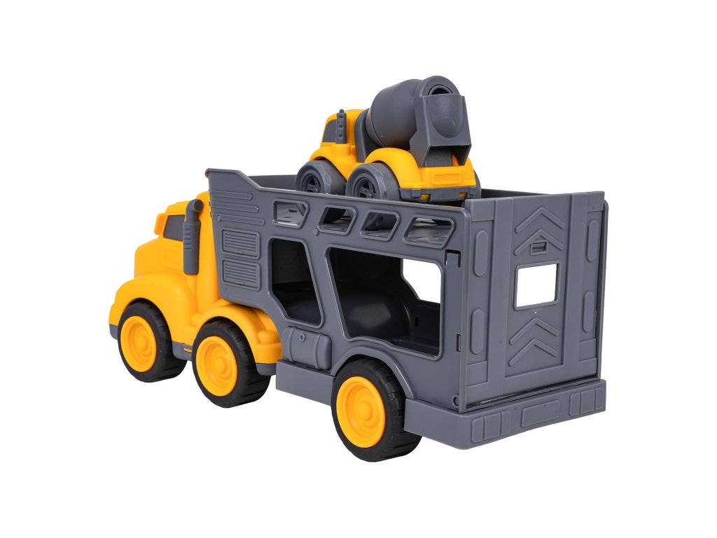 Komplet vozil z vlečnim vozilom in mešalcem betona za otroke od tretjega leta starosti. Komplet je izdelan iz najkakovostnejše plastike v živih barvah. To bo veliko veselja za male ljubitelje gradbenih vozil. Mešalec betona ima premična kolesa s pogonom na prednja kolesa, zelo lahko se premika po površini. Lahko tudi vrtimo hruško z betonom.