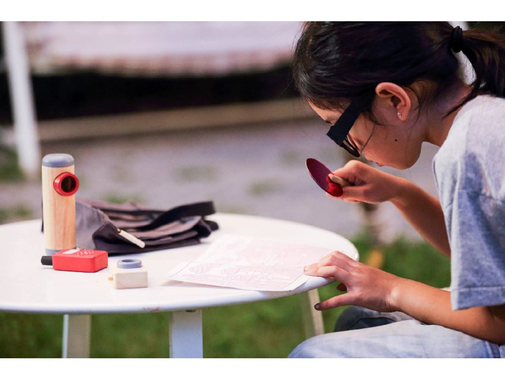 Detektivski komplet omogoča otrokom raziskovanje sveta okoli sebe skozi domiselno igro. Vsebuje osnovne pripomočke za igranje detektiva in spodbuja razvoj domišljije, logičnega razmišljanja in strateškega mišljenja.