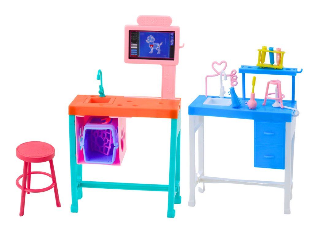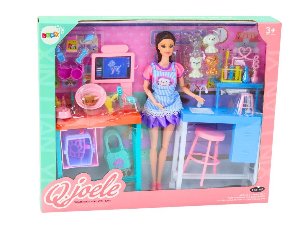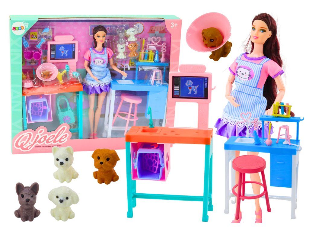 Komplet za lutko veterinarko s pohištvom, dodatki in živalmi za ordinacijo