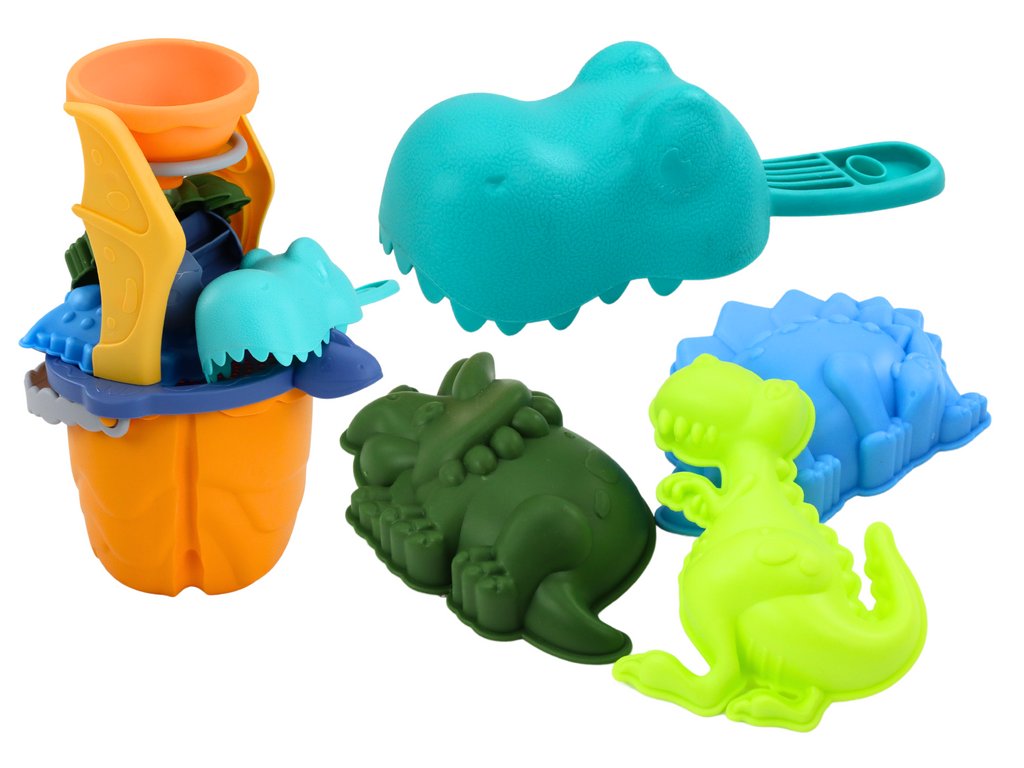 Komplet za pesek dinosaver, lijak, mlinček, modelčki, lopatka 7 delov