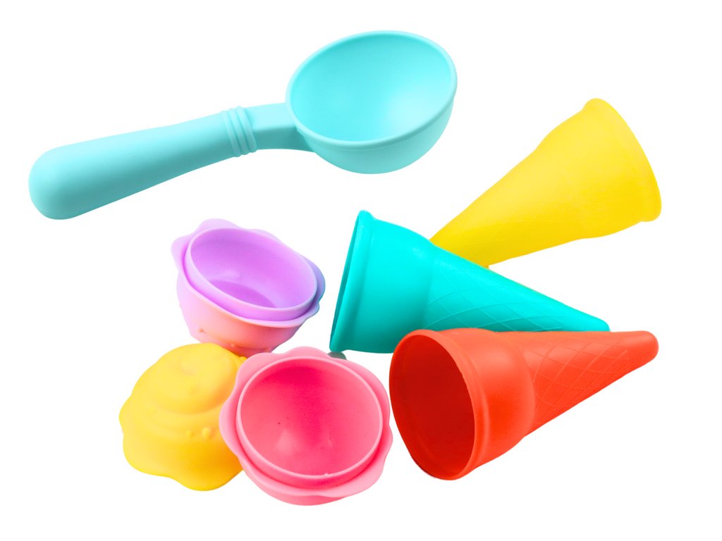 Modelčki v obliki sladoleda so popolni za ustvarjanje peščenih oblik, dodajajo igri kulinarične elemente, kar povečuje raznolikost in kreativnost otrok. Celoten komplet je obarvan v nežnih, pudrastih odtenkih, kar mu daje eleganten in prijeten videz. Zaradi tega bo vsak otrok užival v obilo zabave na plaži ali v peskovniku, lepe barve kompleta pa še bolj spodbujajo k ustvarjalnim dejavnostim.