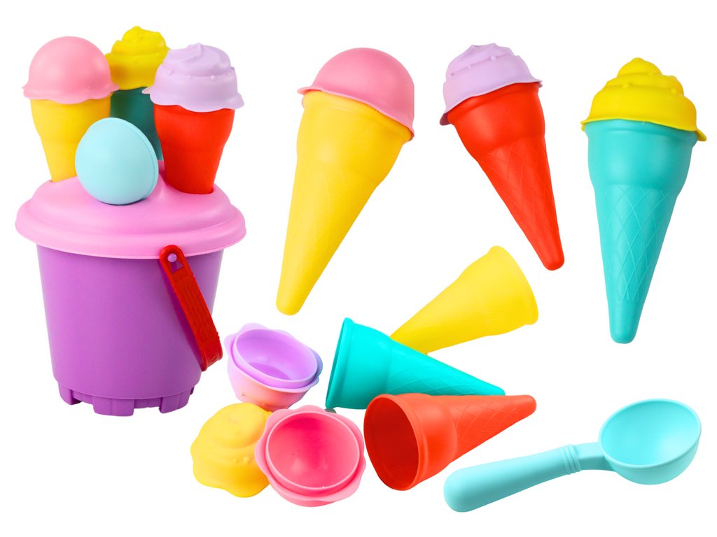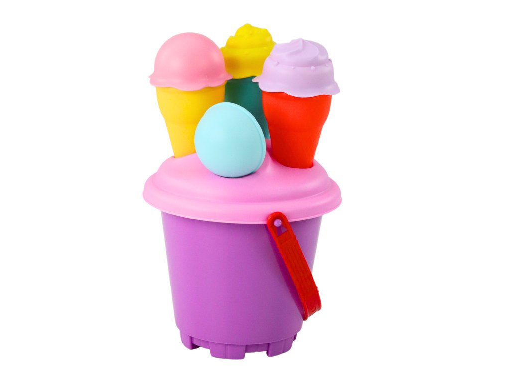 Komplet za pesek Sladoled roza 6 delov vedro in lopatka