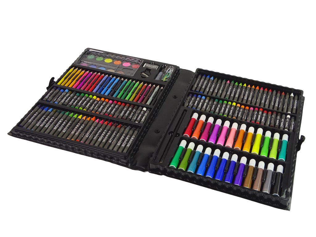 Umetniški komplet za otroke, ki je odlična izbira za darilo ob vsaki priložnosti. Risanje in barvanje spodbuja pravilen razvoj fine motorike pri otroku. Spodbuja kreativnost ter hkrati krepi delovanje možganov in pripravlja otroka na učenje in pisanje.