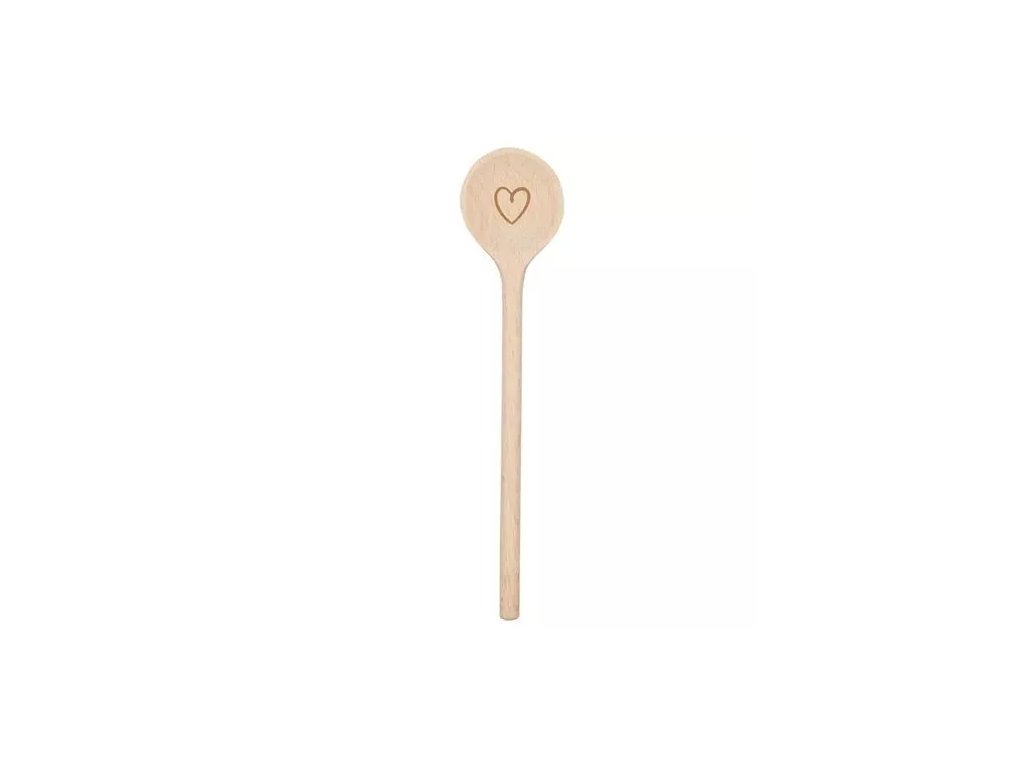 Lesena kuhalnica z nežnim okrasjem v obliki srčka je primeren dodatek za otroško kuhinjo in za igro kuhanja.