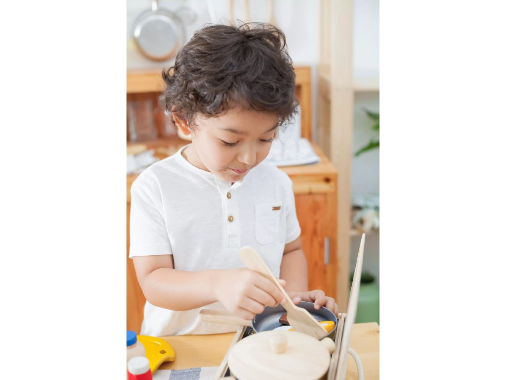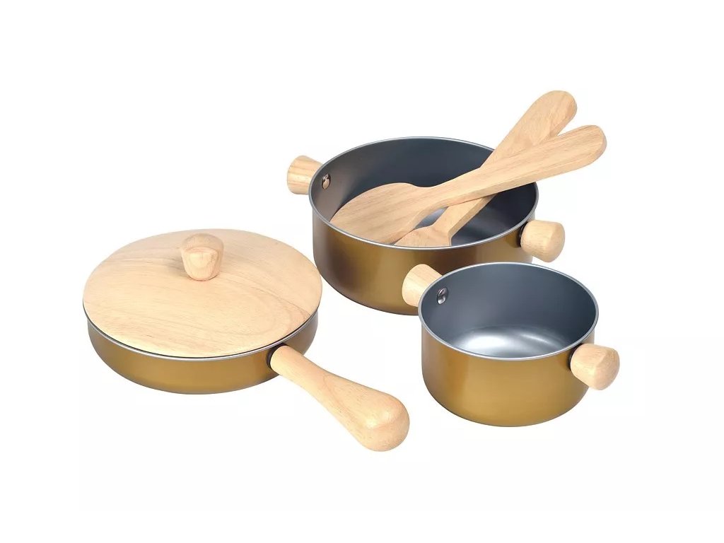 Lesen set, namenjen malim kuharjem in kuharicam, ki radi posnemajo kuhanje in pomagajo staršem. Popolna oprema za igro v kuhinji, izdelana s poudarkom na trajnostni naravnanosti in varnih materialih.
