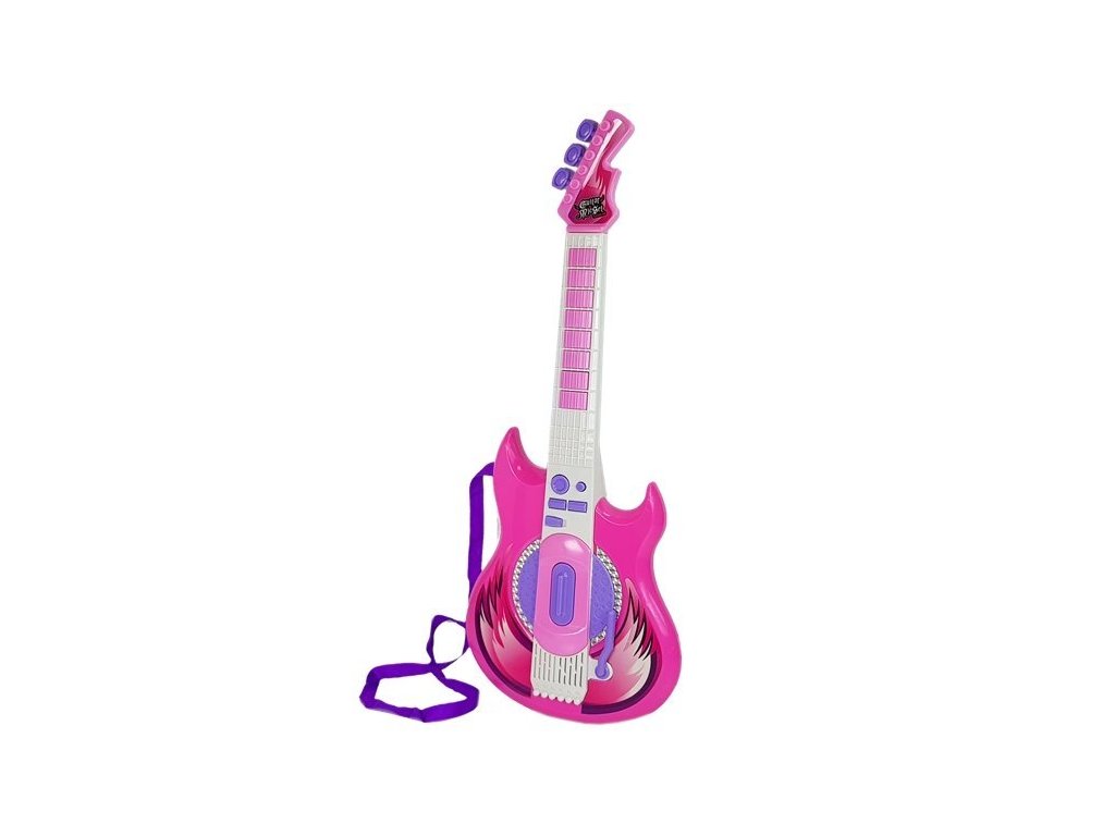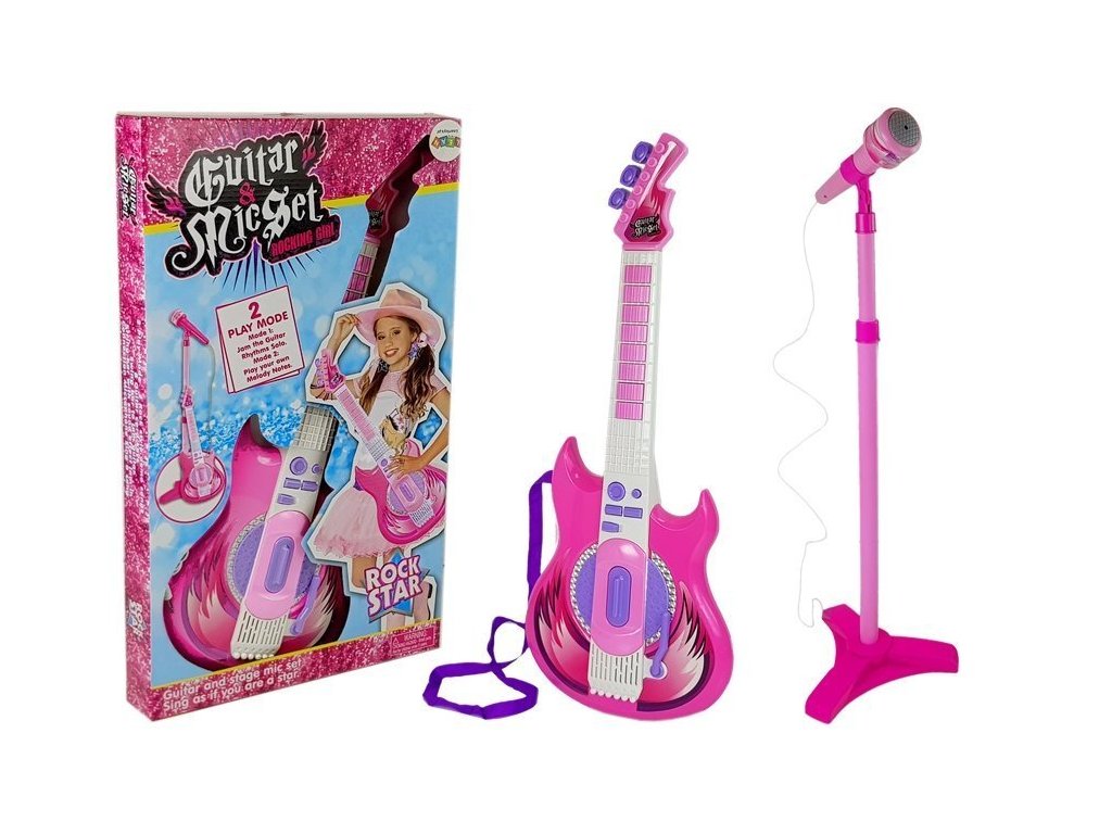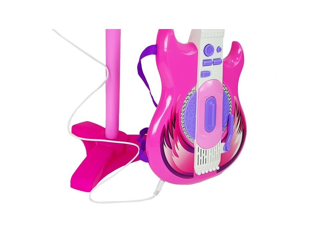 Kytara s mikrofonem Hvězda Rocku Zvuk je skvělý set pro malé hudebníky! S touto fantastickou kytaře může vaše dítě začít svou rockovou kariéru a cítit se jako opravdová hudební hvězda. S mikrofonem umístěným na stojanu bude moci zpívat jako profesionál. Stačí stisknout tlačítka na kytaře a nechat se unášet různými melodiemi.