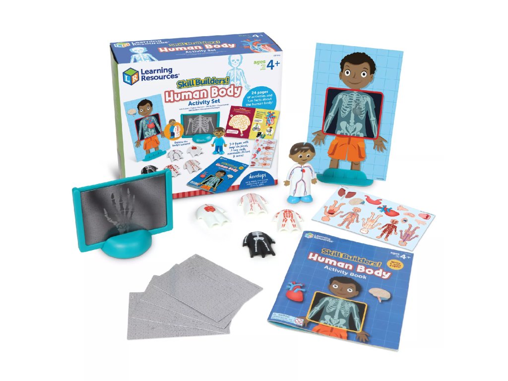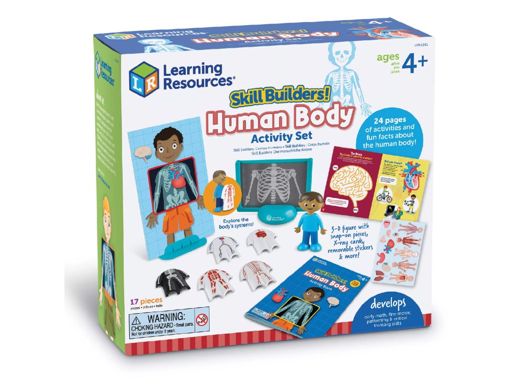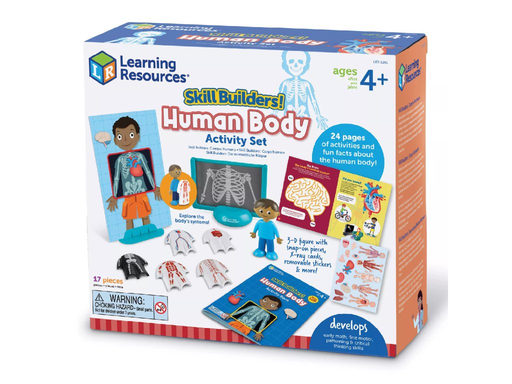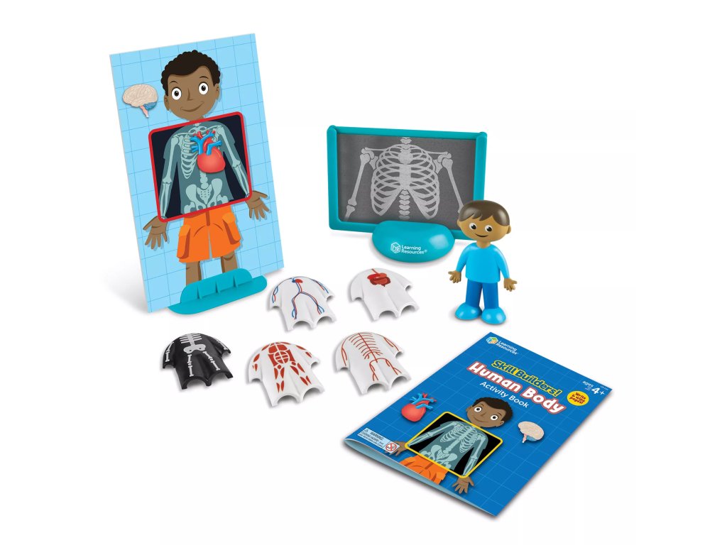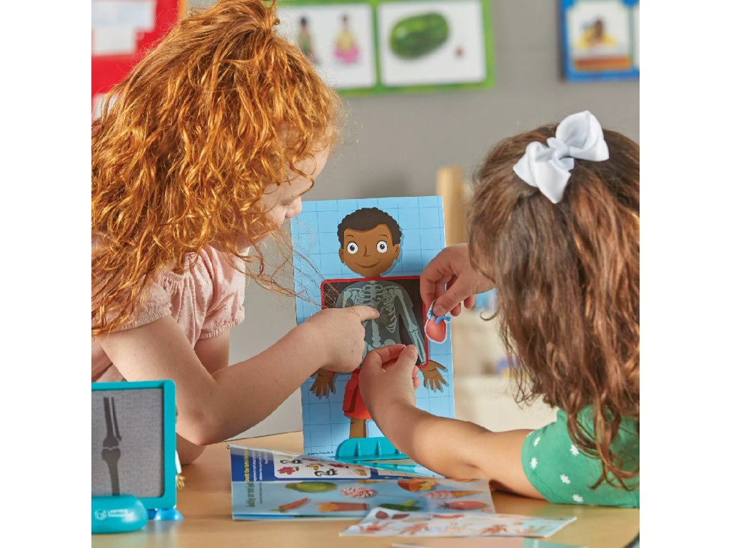 Otroci se skozi igro učijo, kje so nameščeni posamezni organi, kako se imenujejo in čemu služijo. Komplet spodbuja razumevanje osnovnih telesnih sistemov in besedišča, povezanega s človeškim telesom.