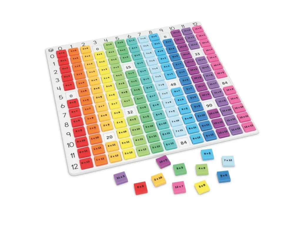 Klasična množilka v formatu Barvne tabele je namenjena otrokom, ki se učijo množenja s pomočjo preglednega in barvno ločenega pripomočka. Barvne razlike v posameznih stolpcih olajšajo sledenje primerom od 0x0 do 12x12.