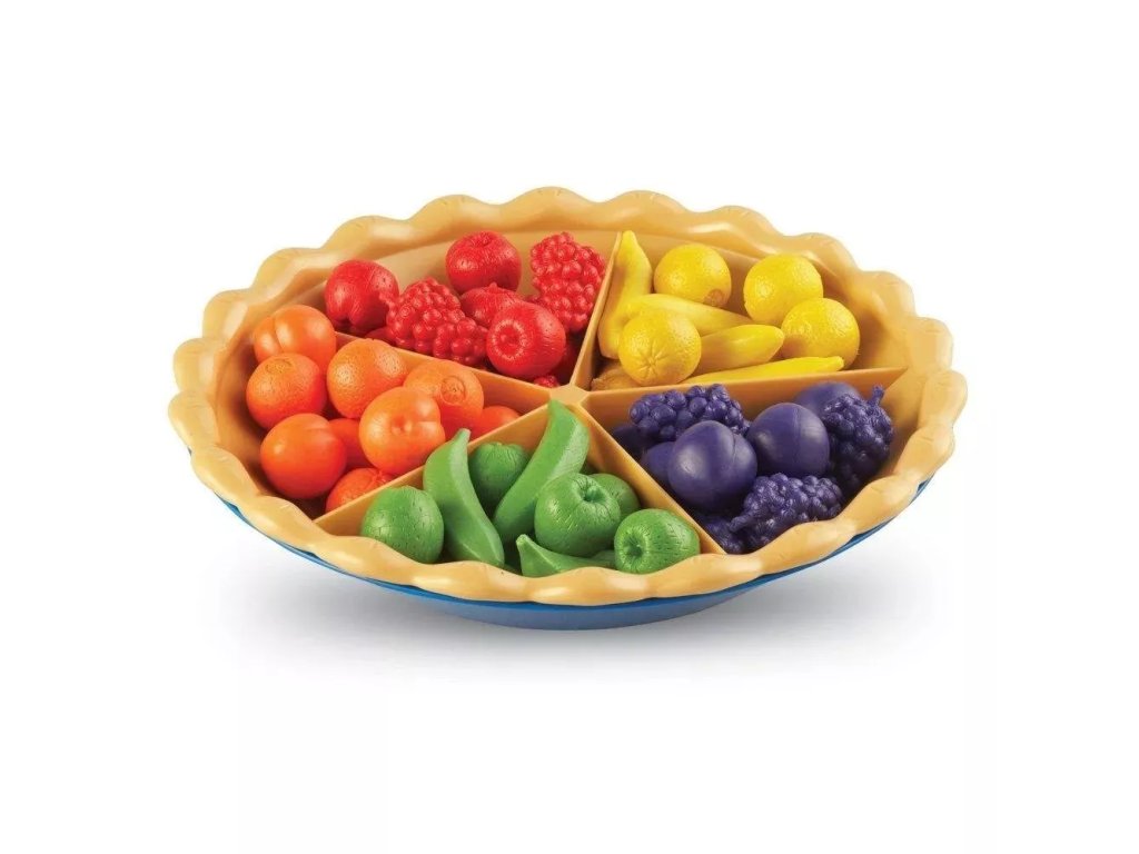 Pripomoček za razvoj zgodnjih matematičnih spretnosti, ki temelji na razvrščanju drobnega sadja po barvi in vrsti.