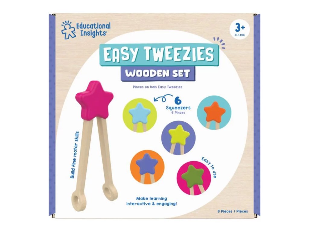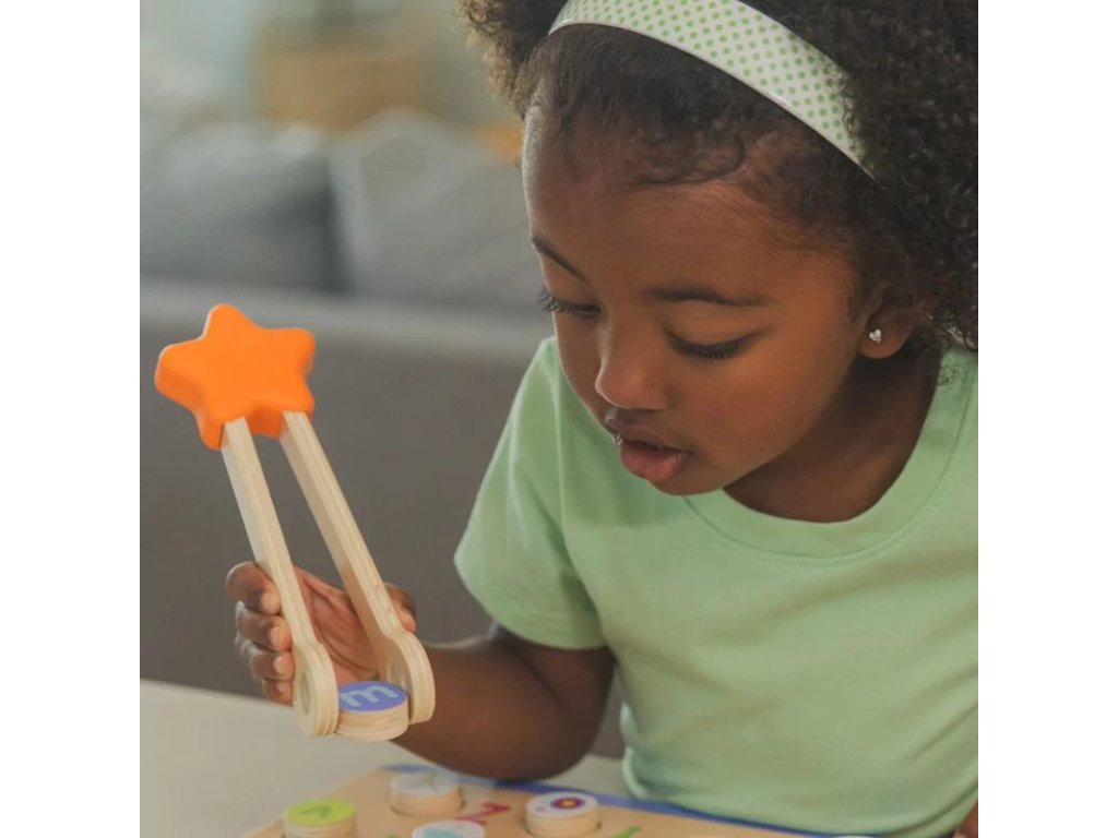 Komplet lesenih pincet britanske izobraževalne znamke Learning Resources, namenjen razvoju fine motorike in krepitvi majhnih mišic v rokah otrok.