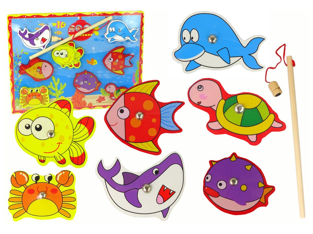 Kar te figure loči, je prisotnost magnetov na njihovih sprednjih straneh. Zahvaljujoč tem magnetom lahko otroci uporabljajo leseno ribiško palico z magnetom, priloženo v kompletu, za lovljenje teh ljubkih bitij. To je igrača, ki uri motorične spretnosti, koordinacijo gibov in koncentracijo.