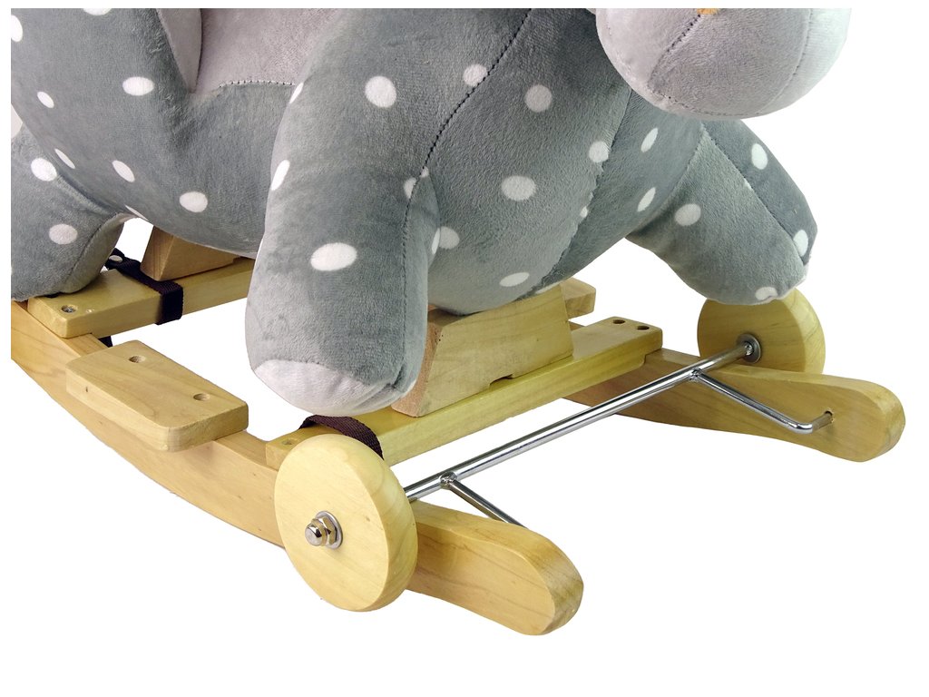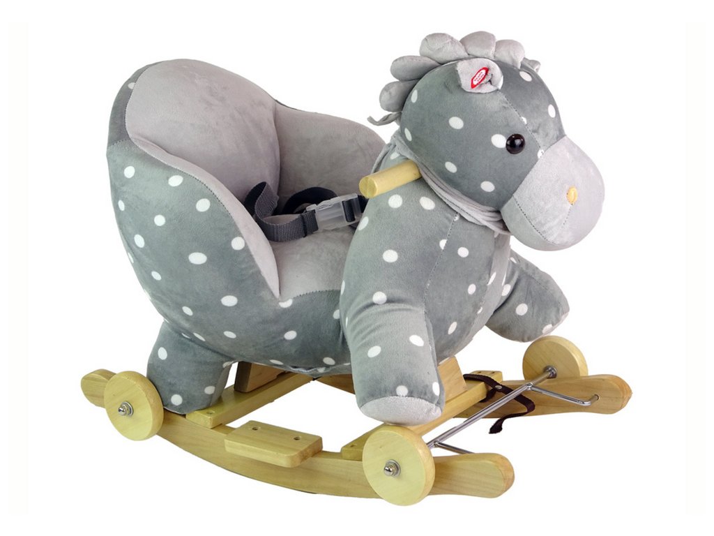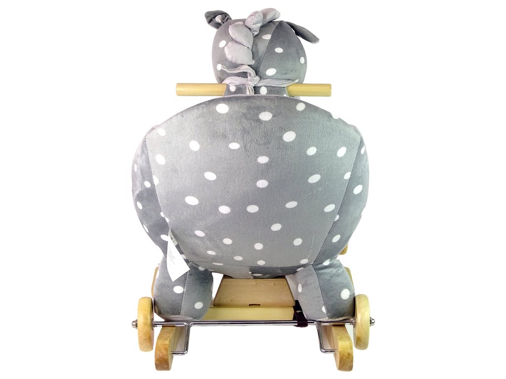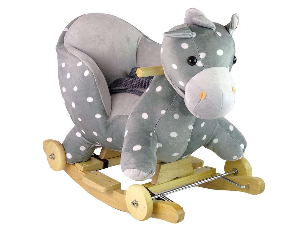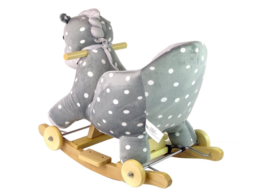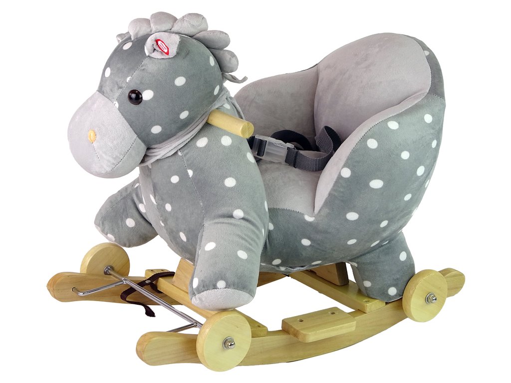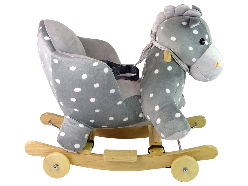 Leseni gugalni konjiček s kolesci siv s pikami