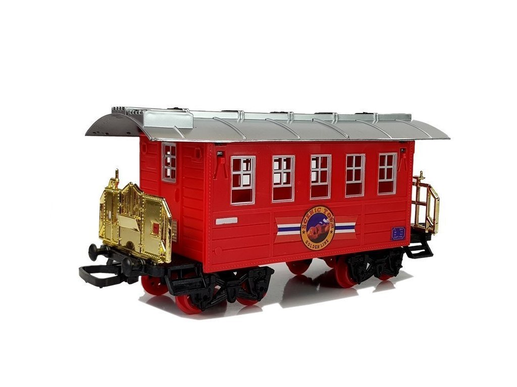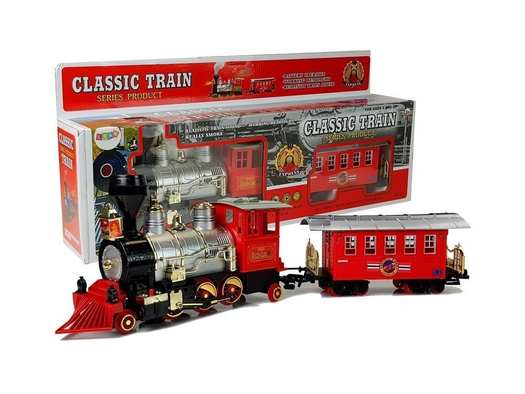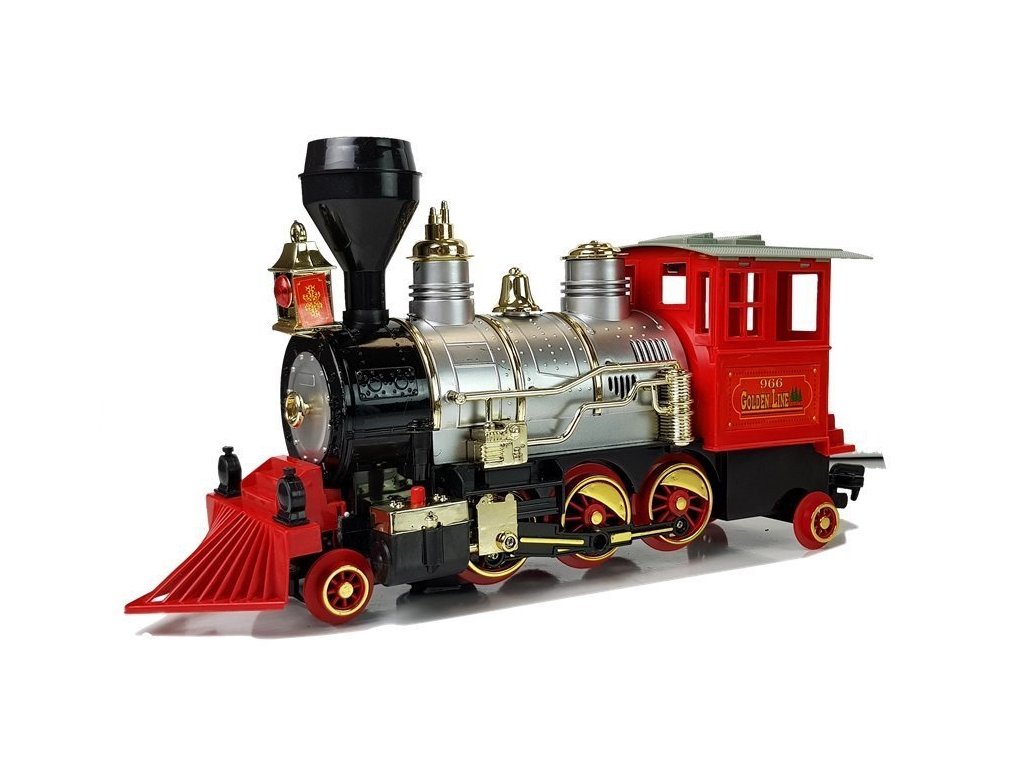 Lokomotiva z zvočnimi efekti se premika na kolescih, ki so skrita v spodnjem delu lokomotive. Tri kolesa, nameščena na stranskih delih igrače, so zgolj dekorativna.