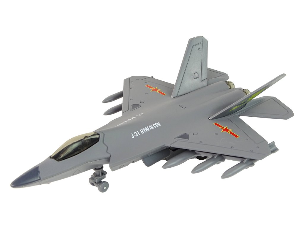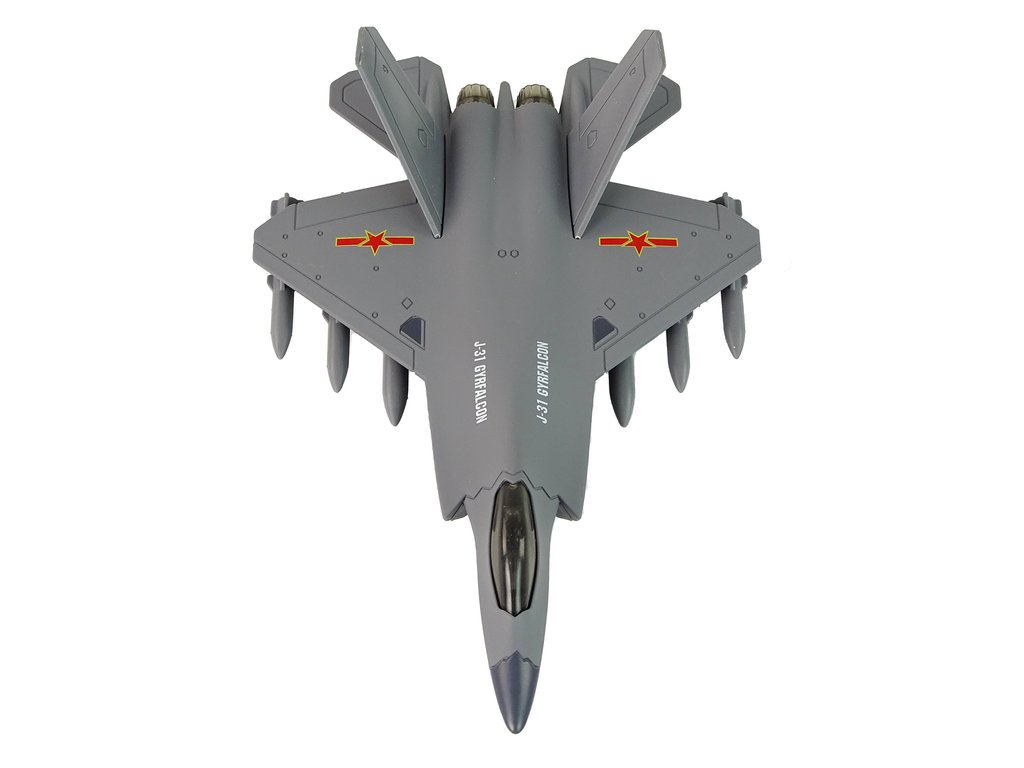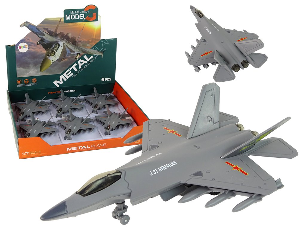 Ima elegantno temno sivo barvo, ki mu daje avtentičen videz, podoben pravemu lovskemu letalu. S svojim osupljivim videzom lahko navduši tako otroke kot odrasle. Opremljen je z gumijastimi kolesi, kar omogoča gladko premikanje po različnih površinah.
