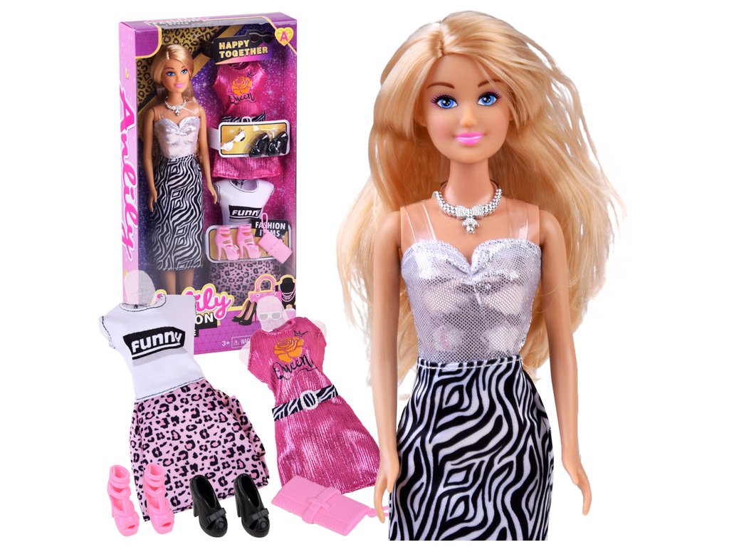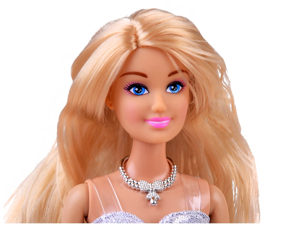 Lutka Anlily z dolgimi blond lasmi je idealna izbira za vsako malo deklico, ki se zanima za modo in stilizacijo. Lutka ima dolge blond lase, iz katerih je mogoče ustvariti čudovite pričeske. Oblečena je v elegantno obleko s srebrnim korzetom, okoli vratu nosi lep srebrn ogrlico in na nogah ima elegantne srebrne sandale s peto.