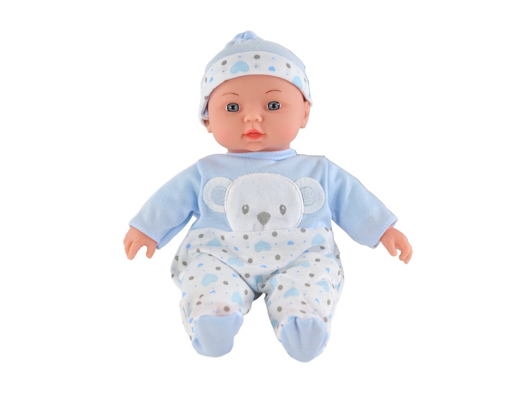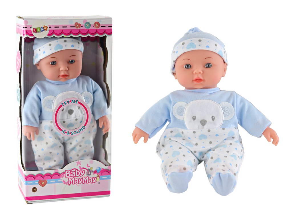 Lutka Bobas v pižamici z medvedkom in kapico z zvoki modra