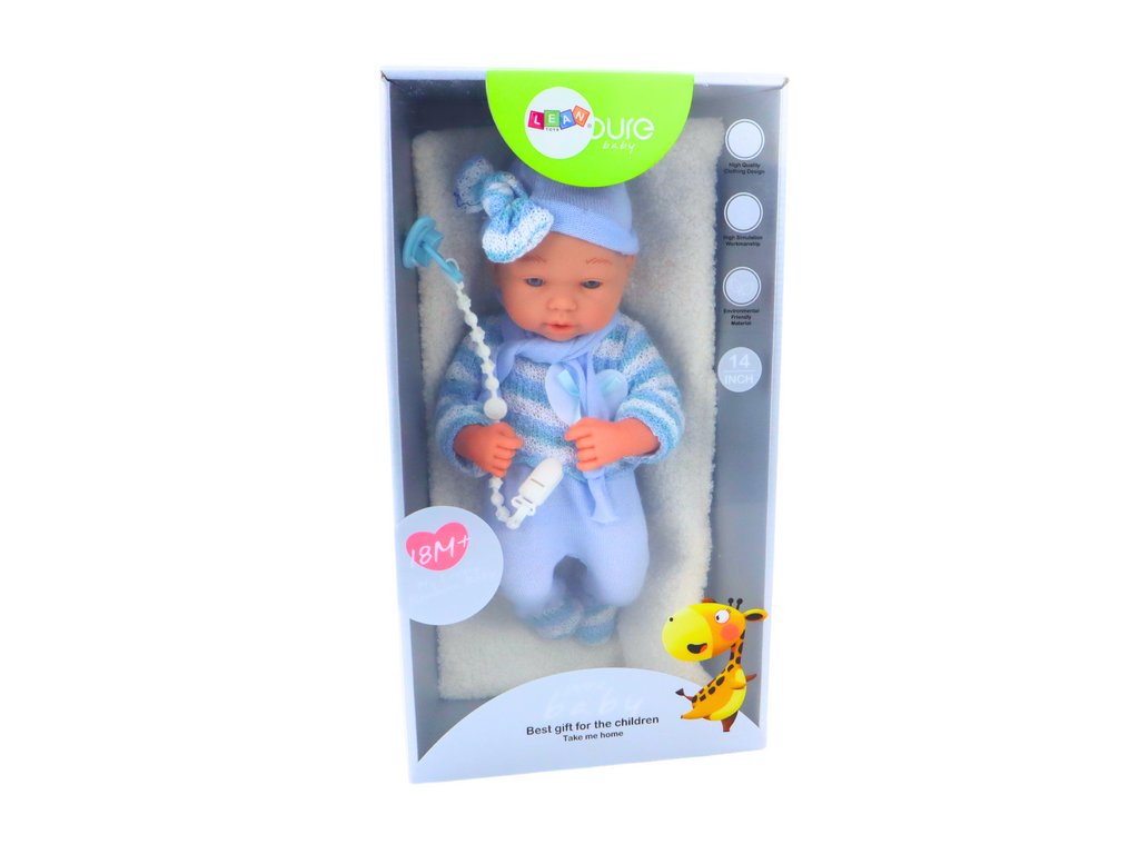 Ta lutka dojenček v modri obleki ne nudi le zabave, temveč tudi oblikuje negovalne in čustvene veščine pri otrocih, zaradi česar je idealna družica za prijazne in ustvarjalne igre.