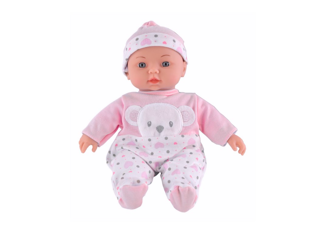 Ta izjemna lutka dojenček v roza pajacku z medvedkom je idealen spremljevalec za majhne otroke, ki se želijo naučiti skrbi in odgovornosti. Prisrčna zasnova in skrbno izdelane podrobnosti spodbujajo otroško domišljijo ter razvijajo socialne in čustvene veščine. Lutka ima tudi zvočno funkcijo – ob pritisku na trebušček oddaja značilne dojenčkove zvoke, kar igri dodaja avtentičnost. Izdelana iz varnih materialov, je ta lutka odlična izbira za zabavo in učenje.