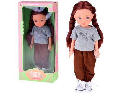 Ta izjemna lutka bo razveselila vsako deklico! Ima kratke, goste črne lase z ravno pričesko, ki jih je mogoče česati in urejati na različne načine. Oblečena je v udobno sivo majico s potiskom, rjave trenirke z belimi črtami in bele športne copate na vezalke. Njen slog združuje modernost in udobje, idealno za aktivne vsakodnevne dogodivščine.