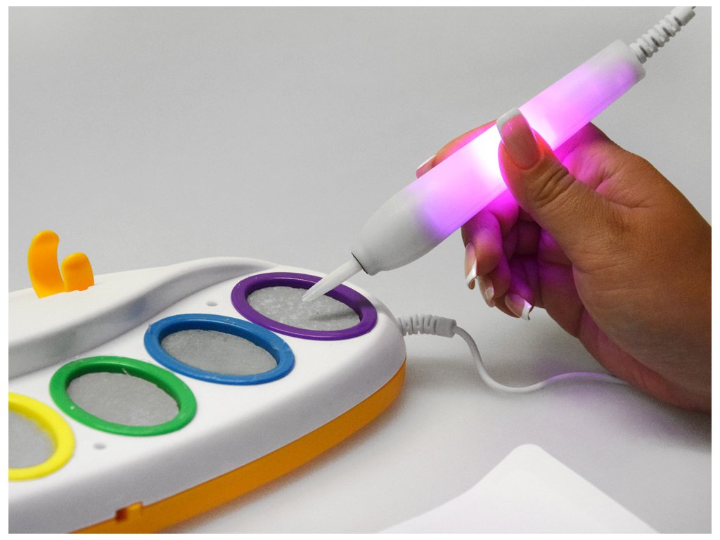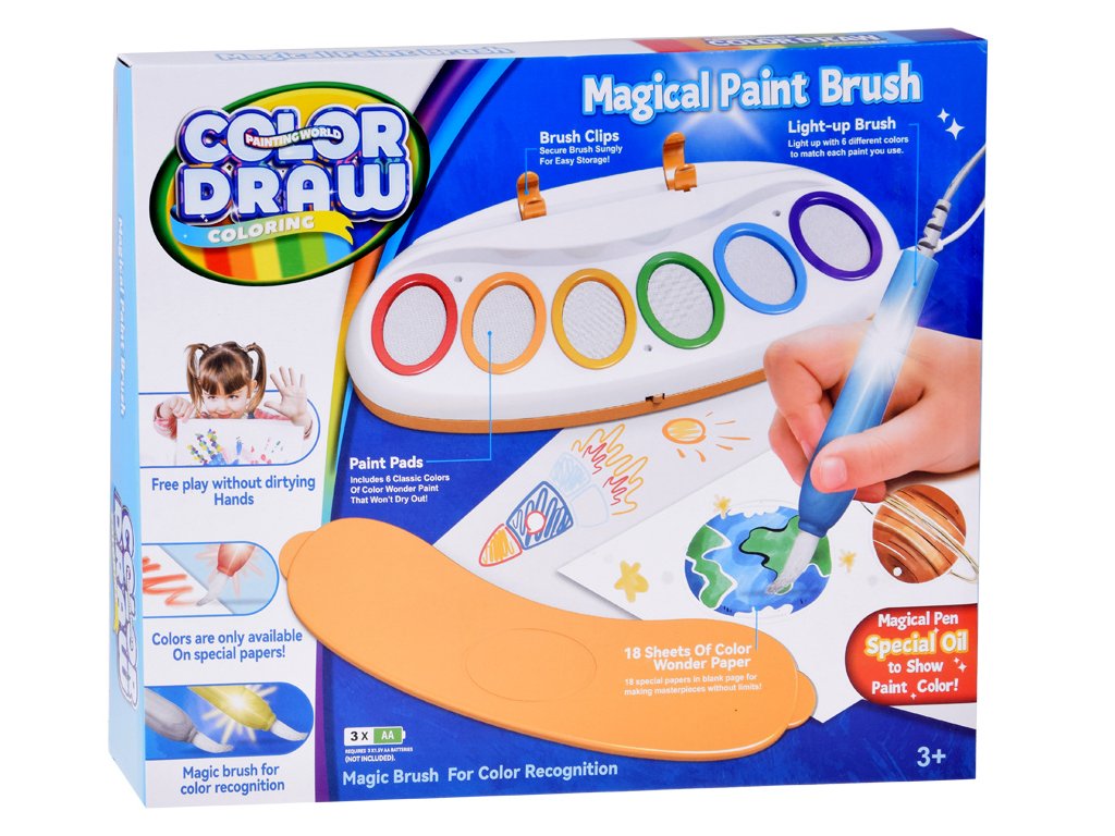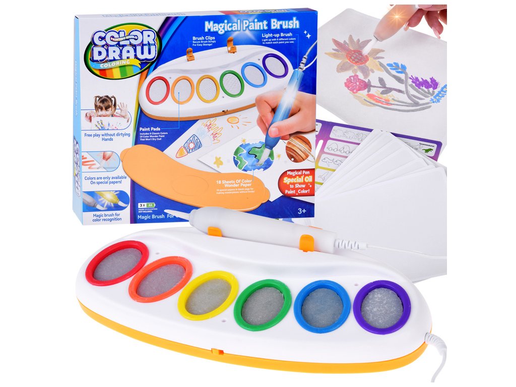 Místo tradičních barev a vody používá sada magický štětec, který vyzařuje bezpečné, nízkoenergetické světlo. Díky tomu se maluje bez použití barviv a barvy se objevují pouze na speciálním papíře, který je součástí sady (18 listů). Stačí se dotknout špičkou štětce barevného otvoru na paletě a poté jej přenést na papír, aby se objevily magické barvy.