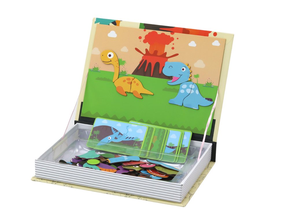 Ta magnetna knjiga vas popelje v davni svet prazgodovinskih orjaških bitij. Njena notranjost skriva skrivnosti, ki vam omogočajo odkrivanje in raziskovanje čudovitih vrst dinozavrov, ter hkrati razvijajo ustvarjalnost in ročne spretnosti.