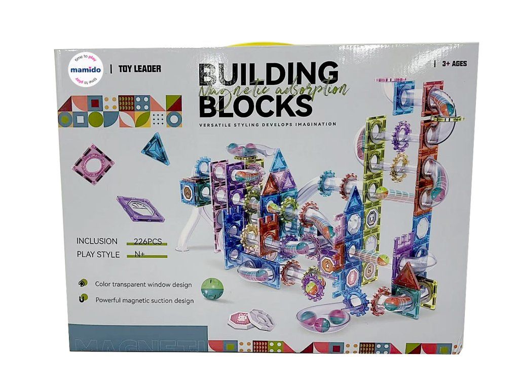 Fantastični magnetni gradbeni komplet, ki združuje kreativno gradnjo z dinamično dirkalno stezo za kroglice! Komplet vsebuje 226 delov različnih oblik, prozornih cevi, lokov, koles in magnetnih plošč, s katerimi lahko otroci ustvarijo lastne barvite konstrukcije in opazujejo, kako kroglice potujejo po njihovi izvirni poti.