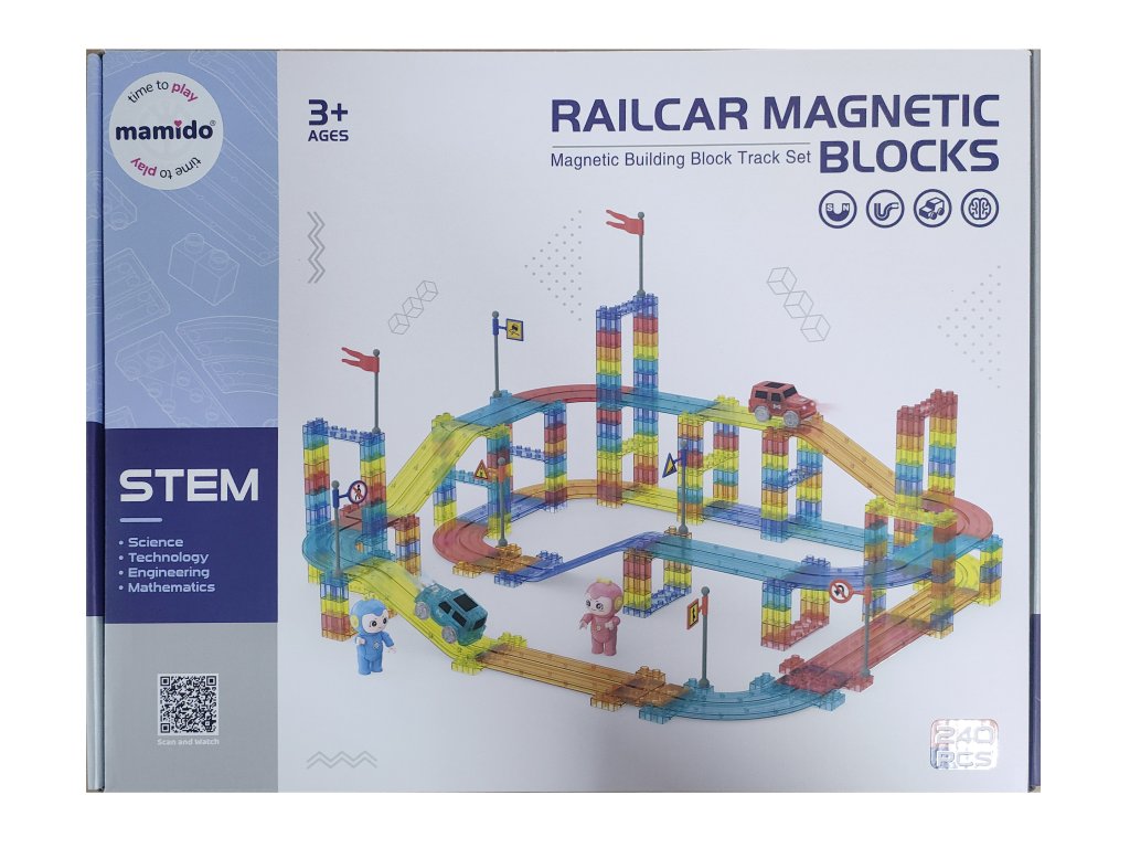 Zgradite svoje pisano mesto, polno mostov, stolpov in dirkališč s tem kompletom magnetnih gradnikov s 240 deli. Zaradi enostavnega povezovanja z magneti je mogoče enostavno sestaviti različne strukture, tire in rampe, po katerih se lahko vozijo avtomobili.