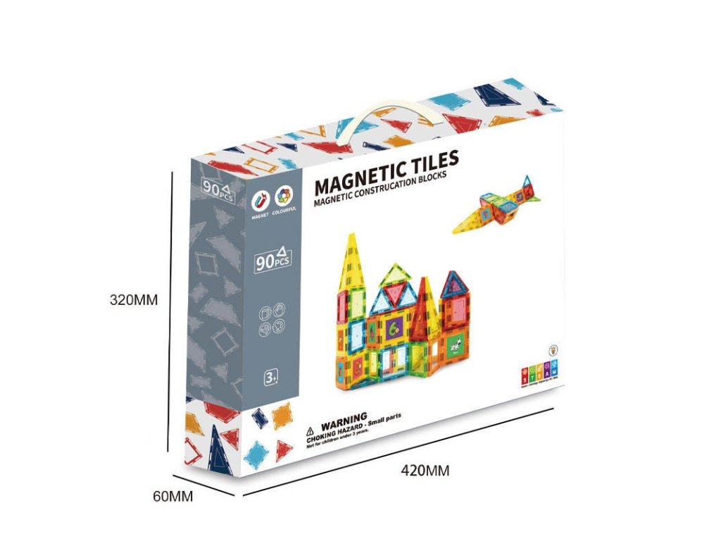 Predstavljamo edinstven komplet za sestavljanje, ki bo vašim otrokom ponudil neskončne ure ustvarjalne zabave! Ta paket vsebuje 90 magnetnih kosov različnih oblik in barv, ki omogočajo ustvarjanje neštetih struktur - od veličastnih gradov do hitrih letal.