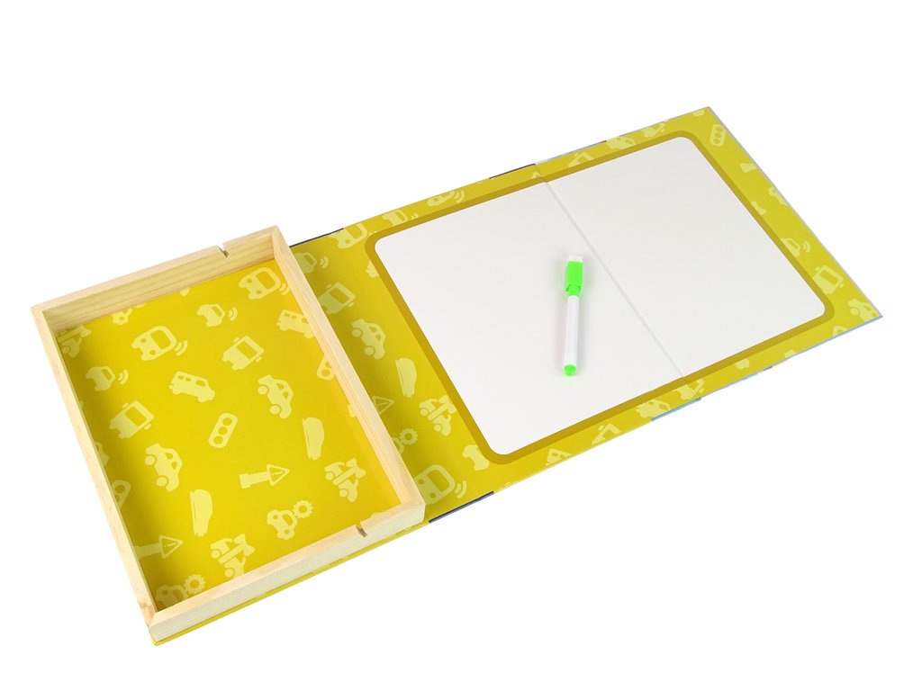 Set vsebuje kartice z upodobljenimi posameznimi liki, naloga malčka pa je, da sestavi magnetne elemente prevoznega sredstva glede na vzorec, da popolnoma reproducira dano sliko. Sestavljanke bodo otroku služile dolgo, saj omogočajo ustvarjanje različnih kreativnih slik. Pero omogoča dodajanje ali risanje lastnih elementov. Prebudi otrokov umetniški čut in uri logično razmišljanje.